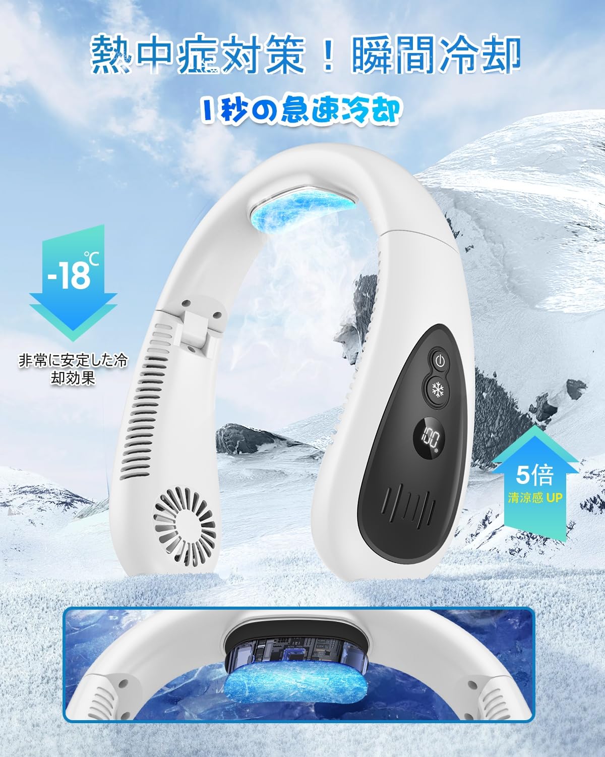 ????【一瞬で涼しさを・2025最新急速冷却技術】2025年の最新の首掛けファンは、冷却シートを2秒で15°Cまで急速に冷やす先進的な半導体技術を搭載し、瞬時に涼しさをもたらします。また、業界をリードする7500 r/m超高速モーターを搭載して強力な気流を提供し、360°全方位送風することで、これまでにない涼しさを体験できます。暑い夏でも快適に過ごしましょう!