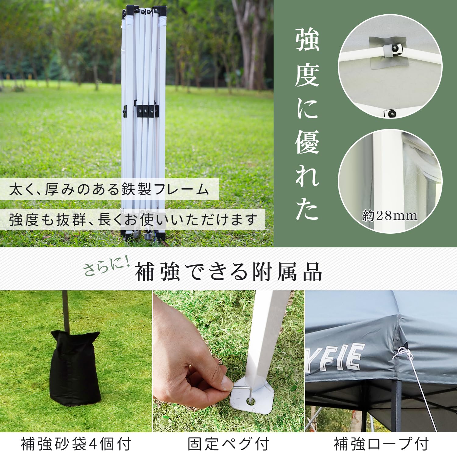 【安定性アップできる付属品】ペグ(4本)、砂袋(4枚)、ロープを付属しており、別途に購入不要で、安定性を大幅に向上させます。