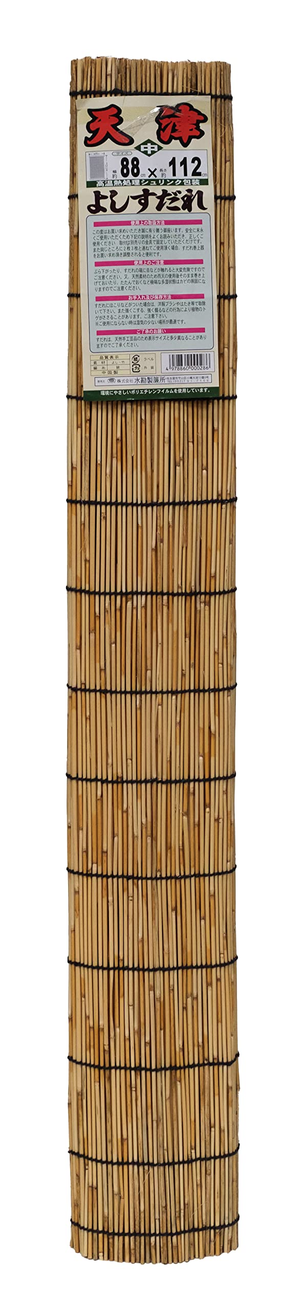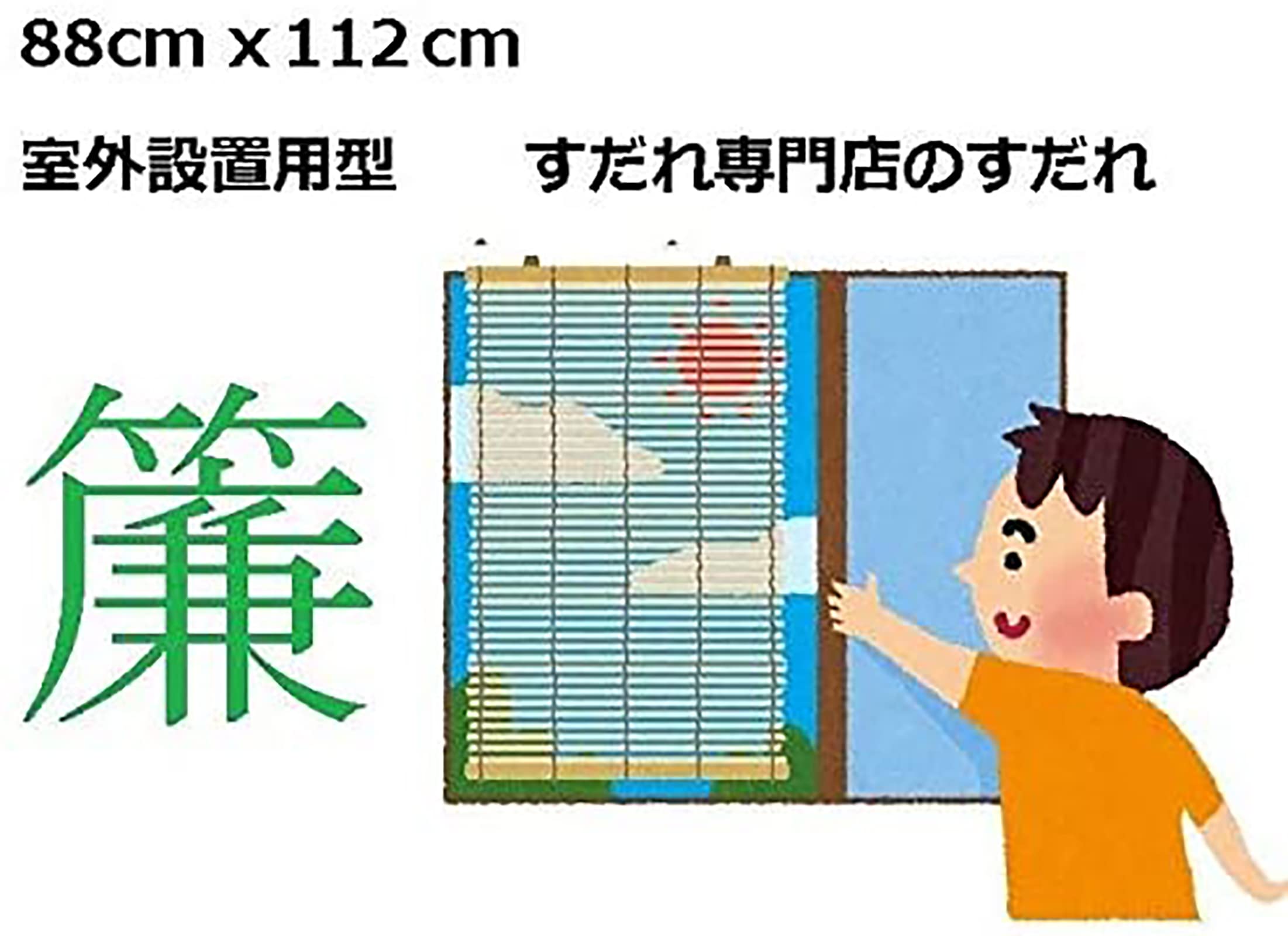 日本の夏の風物詩である天津すだれ。夏を快適に過ごすために昔から使われています。日ざしを遮り、自然の風を取り込み、部屋を涼しくします。外からの視線を遮ります。巾サイズは、半間88cmサイズ。天然手工芸品の為、、多少の折れやささくれ、色むらなどがある場合がございます。天然手工芸品の為、表示サイズと多少異なる場合がございます。取付けは別売の金具で固定していただくだけです。