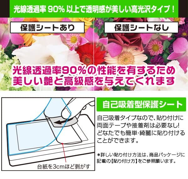 貼っていることを感じさせない透明度、指紋がつきにくいフッ素加工、そして表面硬度9H相当で傷がつきにくい保護フィルムです。