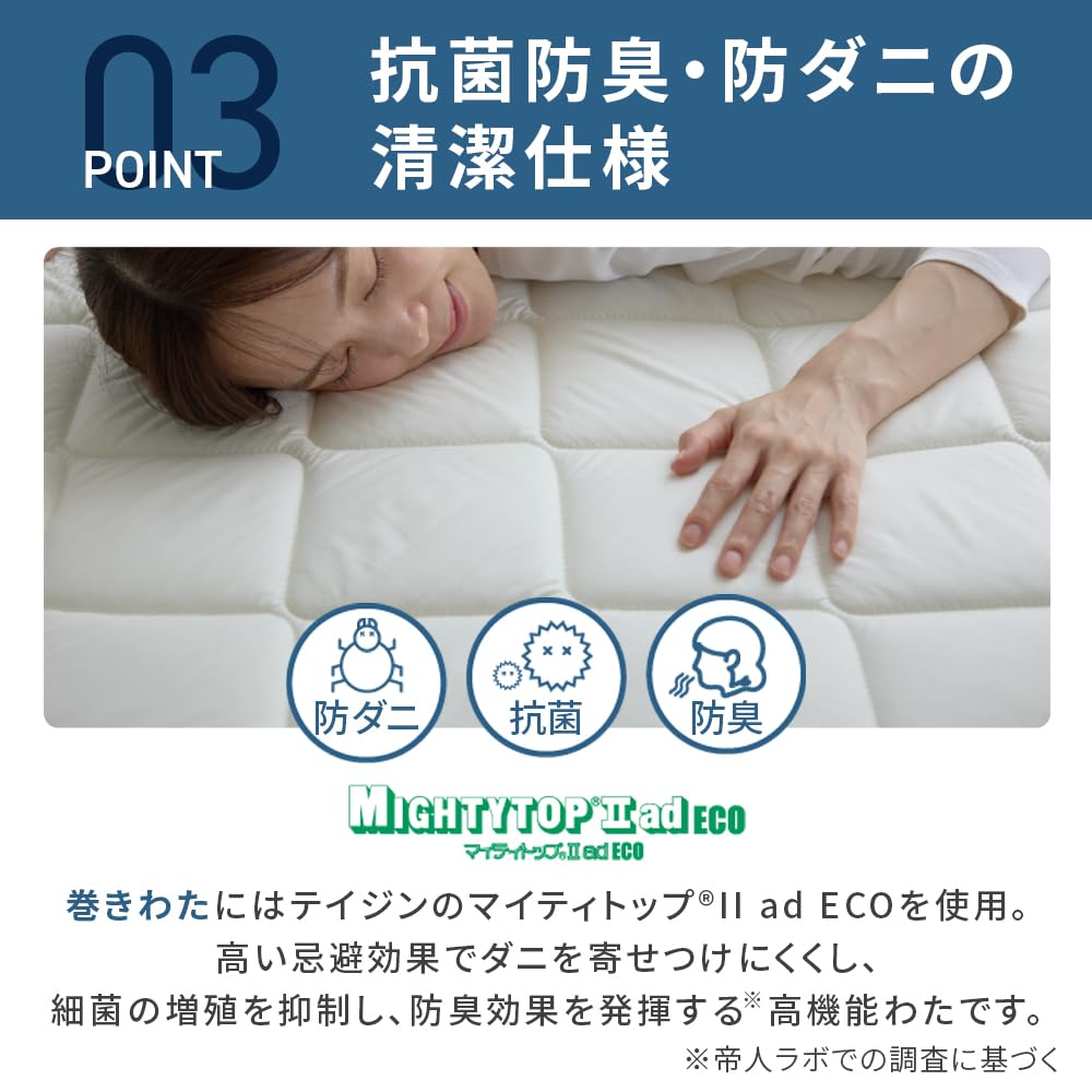 中材:抗菌防臭防ダニわたテイジンマイティトップ2 ADECO