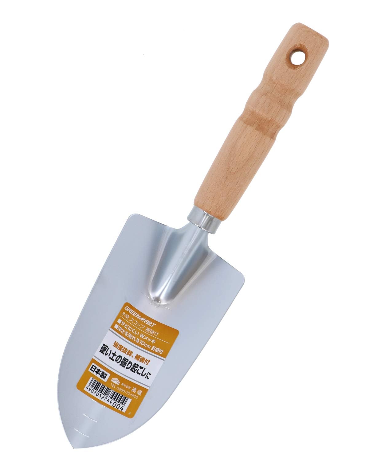 高儀(Takagi) GREEN ART スコップ 木柄 補強付 Wクロームメッキ 硬い土の堀り起こしに ●サビにくいWメッキ ●深さを測れる10cm目盛付