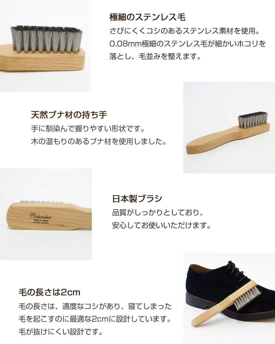 【在庫処分】[コロンブス] 国産シューズブラシ 極細ステンレス毛・ソフトタッチ スエードブラシ 起毛革用・スエード・ヌバック・ムートン メンズ
