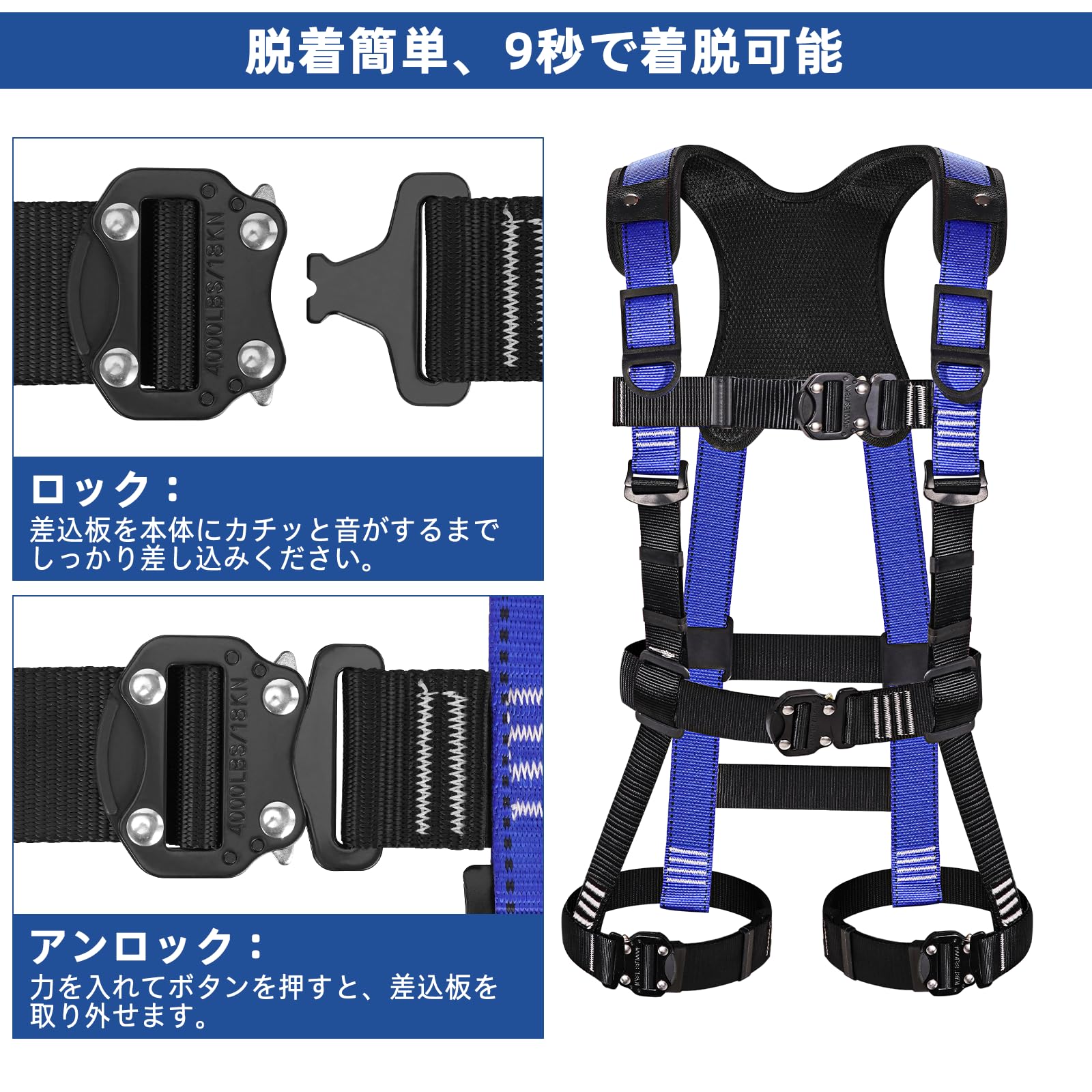 ![【在庫のみ】[Jisentoll] フルハーネス 新規格 セット フルハーネス安全帯 新規格 セット 脱着簡単 腹部と胸と脚ワンタッチバックル 便利 安全 水平型腿ベルト 伸縮式 ダブルランヤード ハーネス 安全帯 新規格 墜落制止用器具 高所作業用 電気工事 落下防止 (使用可能質量 100kg)](https://baseec-img-mng.akamaized.net/images/item/origin/ea02e7a3c8823928a4b3e6f1bbcbc098.jpg?imformat=generic)