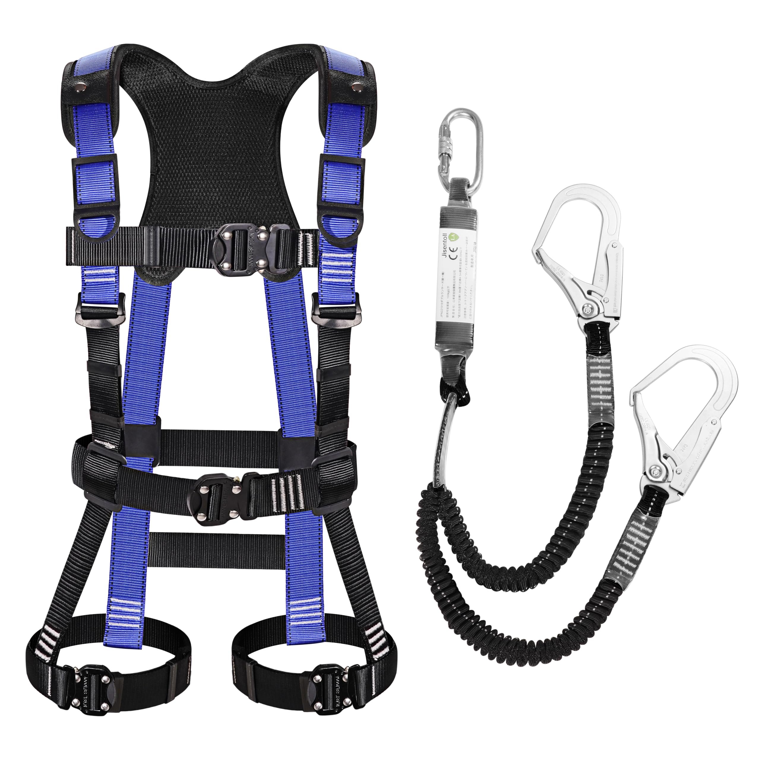 [Jisentoll] フルハーネス 新規格 セット フルハーネス安全帯 新規格 セット 脱着簡単 腹部と胸と脚ワンタッチバックル 便利 安全 水平型腿ベルト 伸縮式 ダブルランヤード ハーネス 安全帯 新規格 墜落制止用器具 高所作業用 電気工事 落下防止 (使用可能質量 100kg)