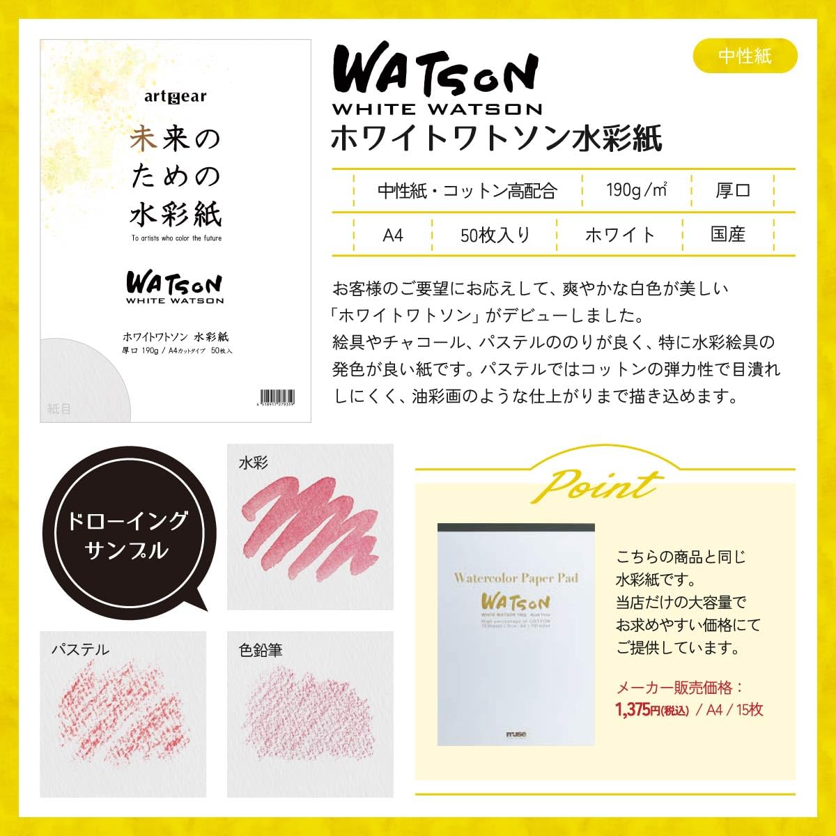 artgear 未来のための水彩紙 A4 50枚 ホワイトワトソン水彩紙 190g 厚口 (agp008)