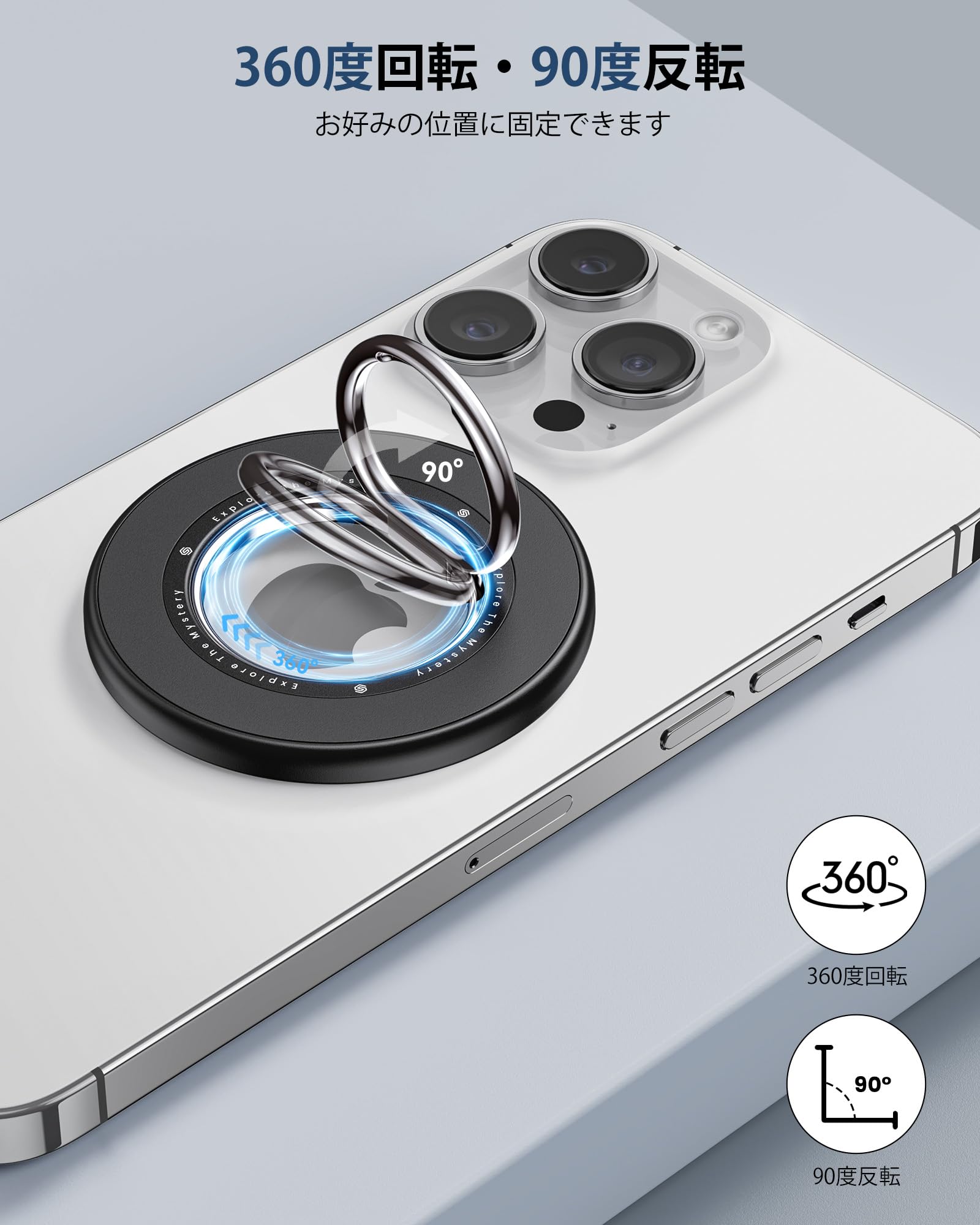 【両面マグネット・超?磁力】SODI スマホリング MagSafe対応 360度回転・90度反転 マグセーフ MagSafe リング バンカーリング マグネット式 磁石 簡単着脱 スマホ落下防止 iPhone 17/16/15/14/13/12 Pro Max&Androidシリーズなどに対応 車載ホルダー テーブル 金属リング付き ブラック