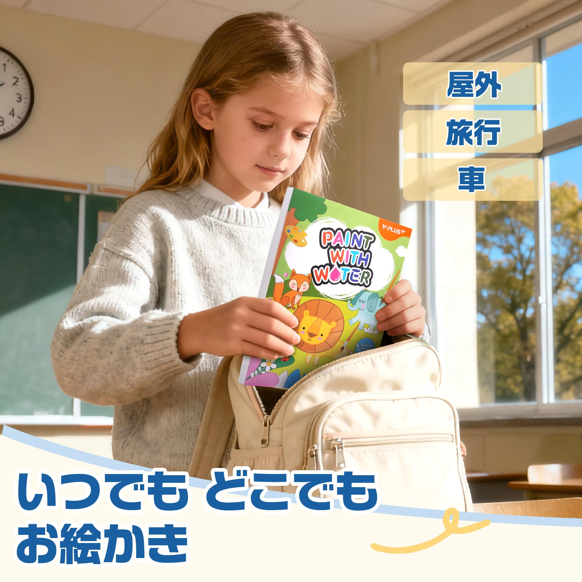 【在庫処分】YPLUS 幼児向け水塗り絵 1-3歳 2-4歳の子供用水彩画用紙 何回でもぬれる塗り絵 筆付きの絵画手工芸ギフト 動物柄
