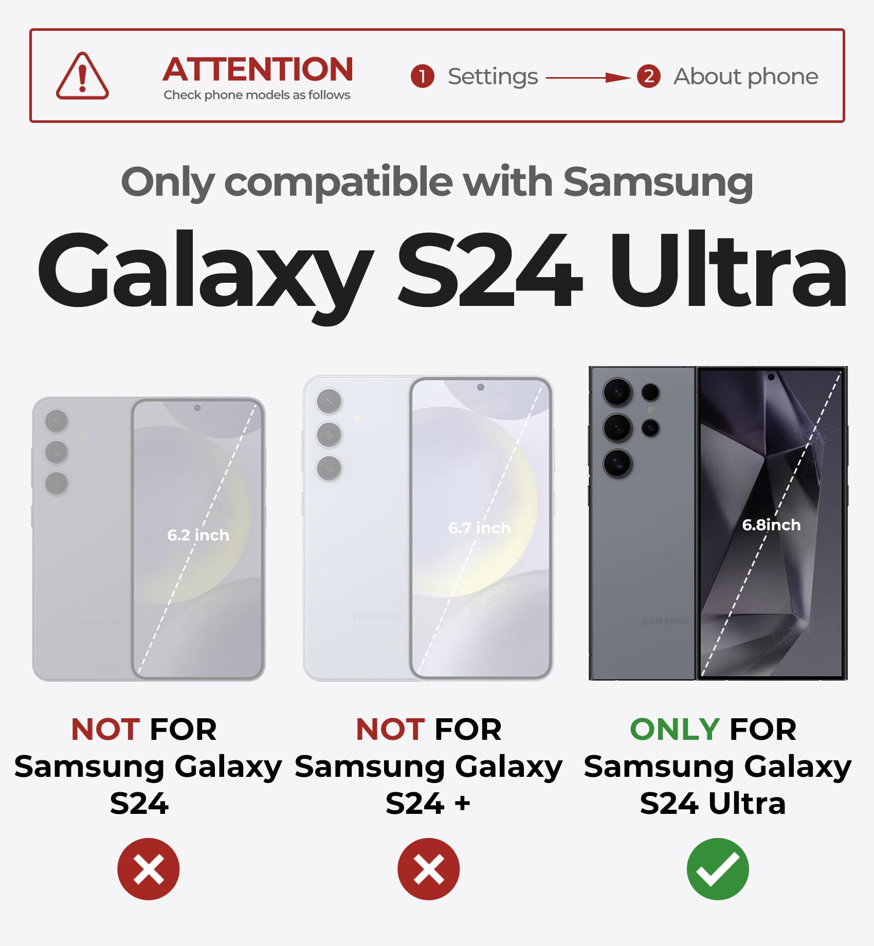 【Galaxy S24 Ultra専用マグネットケース】 本製品はSamsung Galaxy S24 Ultrasに完全フィットする磁気対応ケースです。全てのワイヤレス充電器やMagSafeアクセサリーと互換性があります(※ご購入前に端末モデルをご確認ください)。