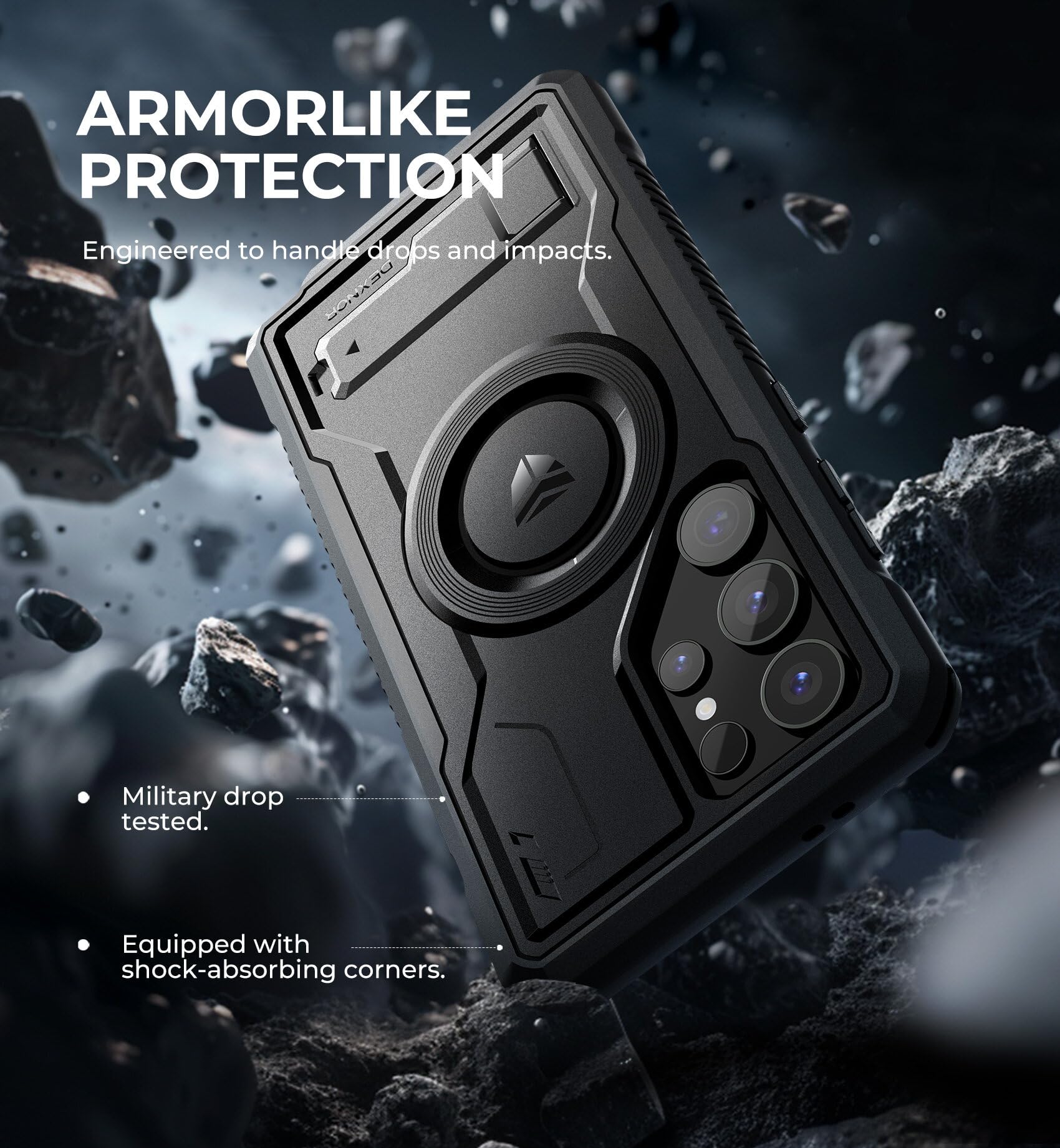 Dexnor Samsung Galaxy S24 Ultra用 マグネットケース 調整可能キックスタンド&2種類フロントフレーム&内蔵スクリーンプロテクター MagSafe対応 耐衝撃 全面防護 頑丈保護カバー(ブラック)