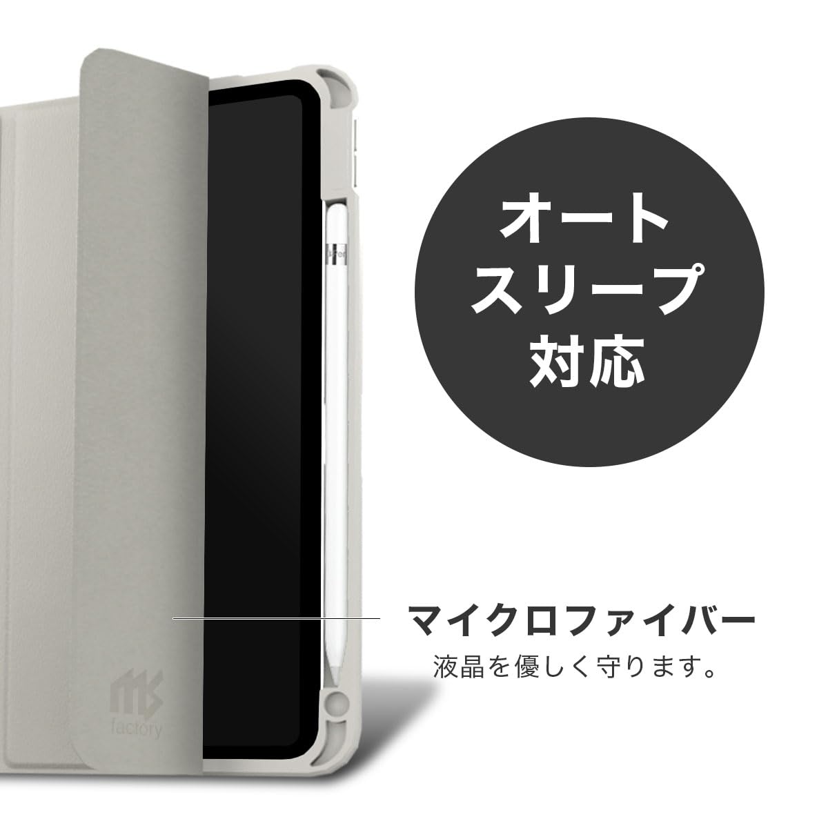 【在庫のみ】MS factory iPad 9世代 ケース 第9世代 第8世代 第7世代 用 アイパッド 10.2 カバー 耐衝撃 Apple Pencil ホルダー ペン収納 薄型 オートスリープ スタンド ライト グレー IPD-7-NO-DET-LGY