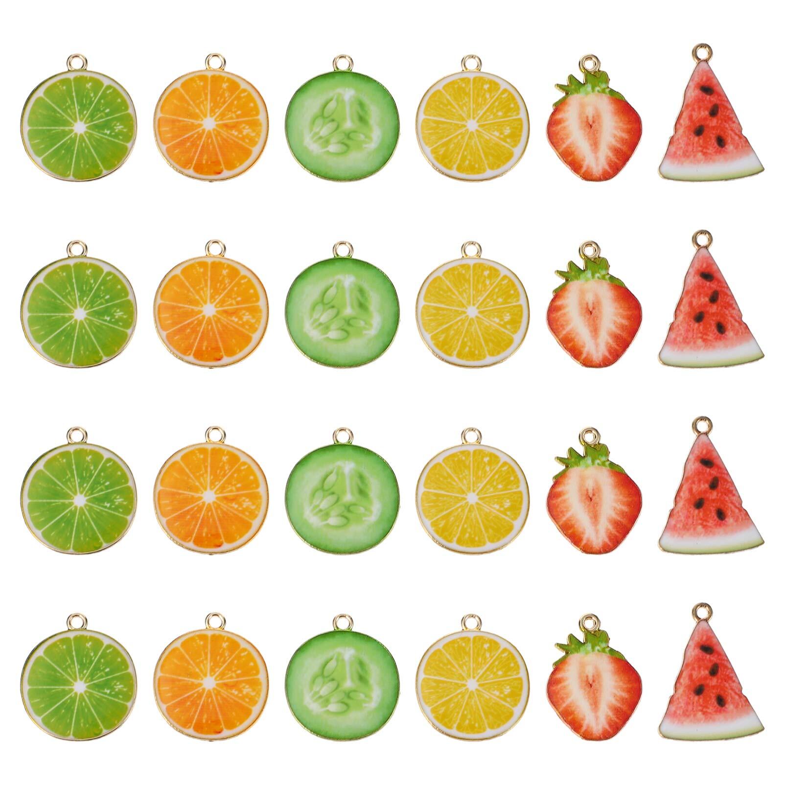 【人気】[FRCOLOR] 24個入り フルーツ形 合金チャーム セット Diyアクセサリー ペンダント キーホルダー バッグ飾り イヤリング ブレスレット用 フルーツジュエリーパーツ