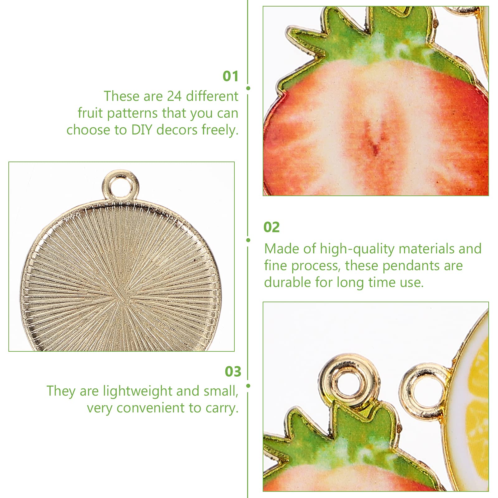 耐久性に優れた素材使用:合金製の24個のフルーツシェイプペンダントは、細かい加工技術で仕上げられており、長時間の使用でも形状や色味が保たれます。