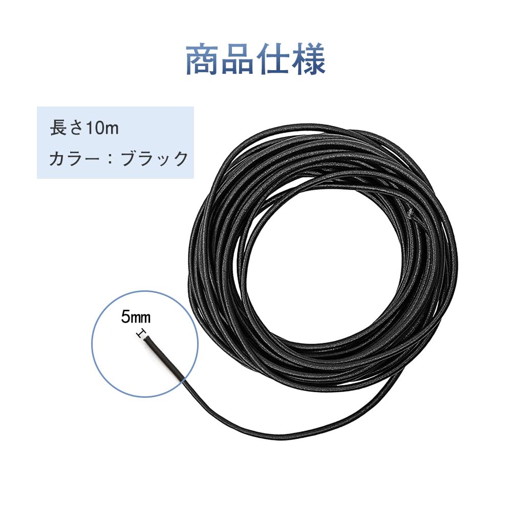 パラコード ショックコード 弾力線 ゴム紐 アウトドア用ゴムロープ 超強力 軽量 耐久 多目的ロープ (ブラック, 5mm)
