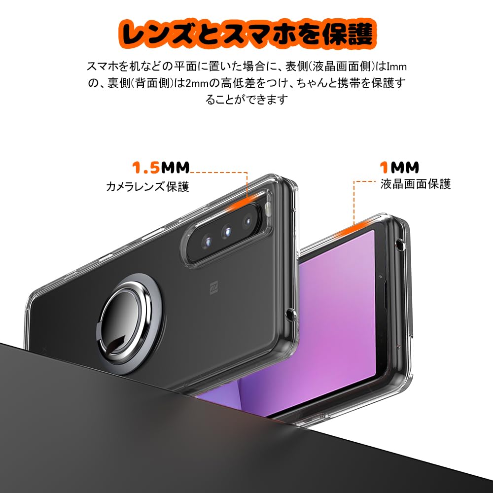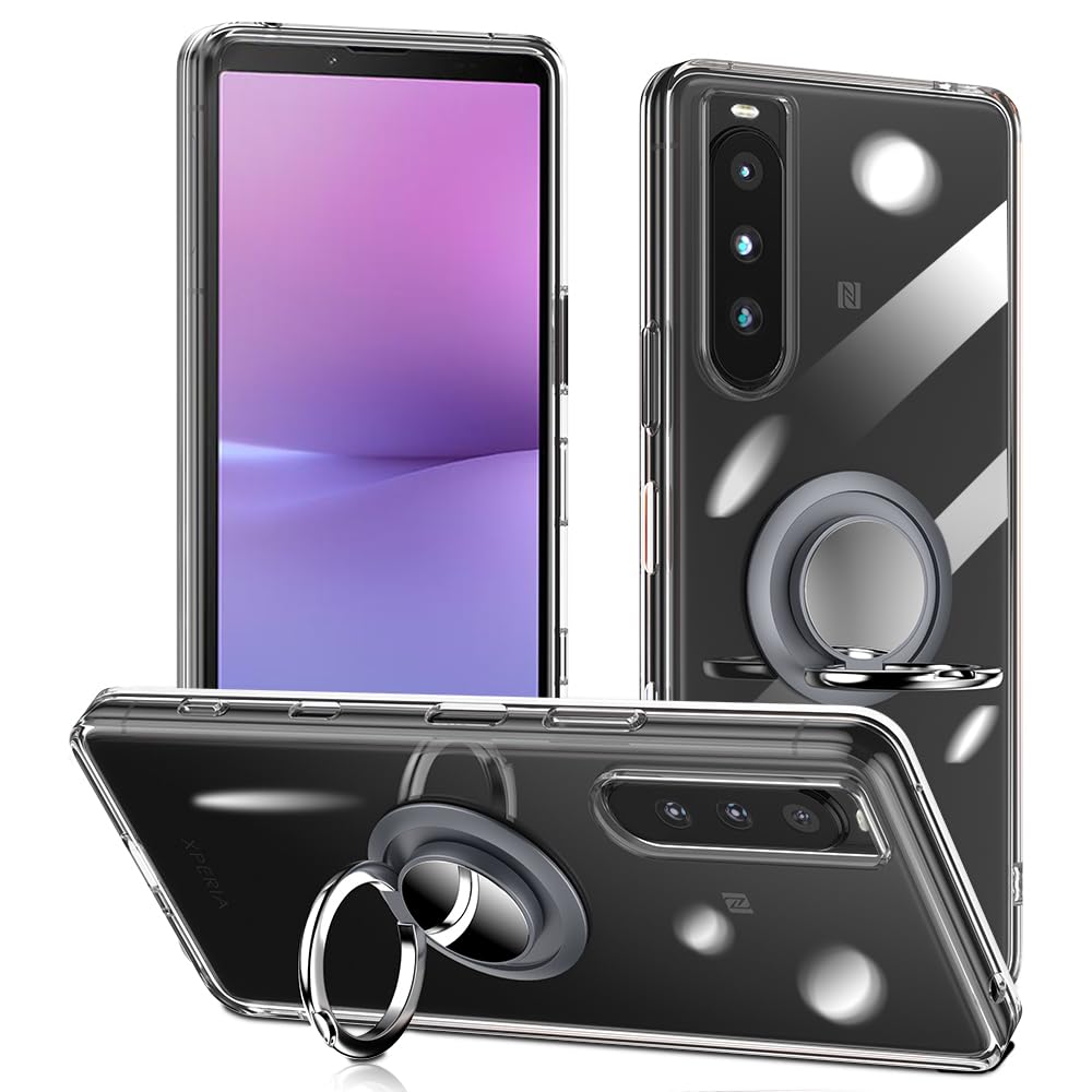 対応 Xperia 10 V ケース SO-52D SOG11 リング付き 透明 エクスペリア10V スマホケース リング クリア シリコン 薄型 スタンド機能 耐衝撃 耐久 滑り止め(Xperia 10 V クリア)