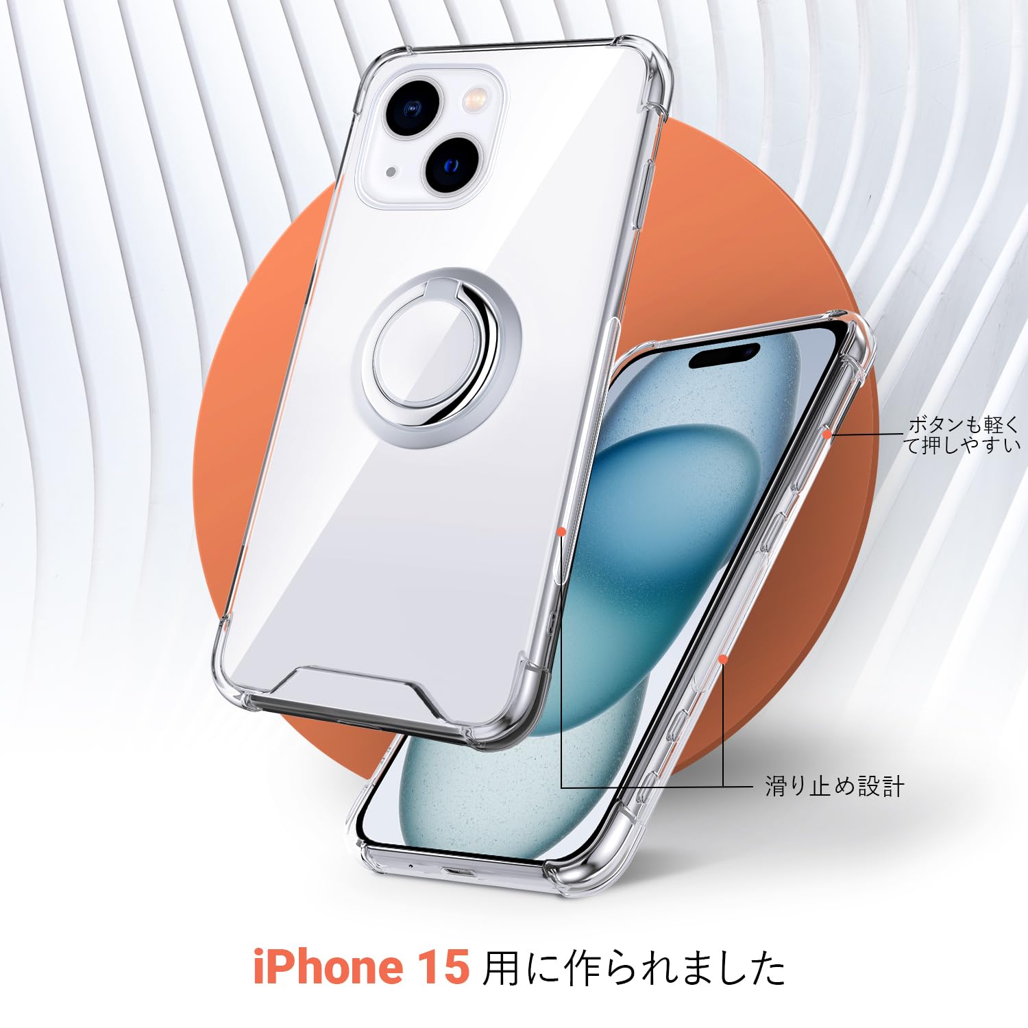 Rockaway iPhone 15 用 ケース リング付き 耐衝撃 耐久 すり傷防止 滑り止め スタンド機能 軽量 薄型 クリア TPU 透明 スマホケース アイフォン15 用カバー 6.1インチ - クリア