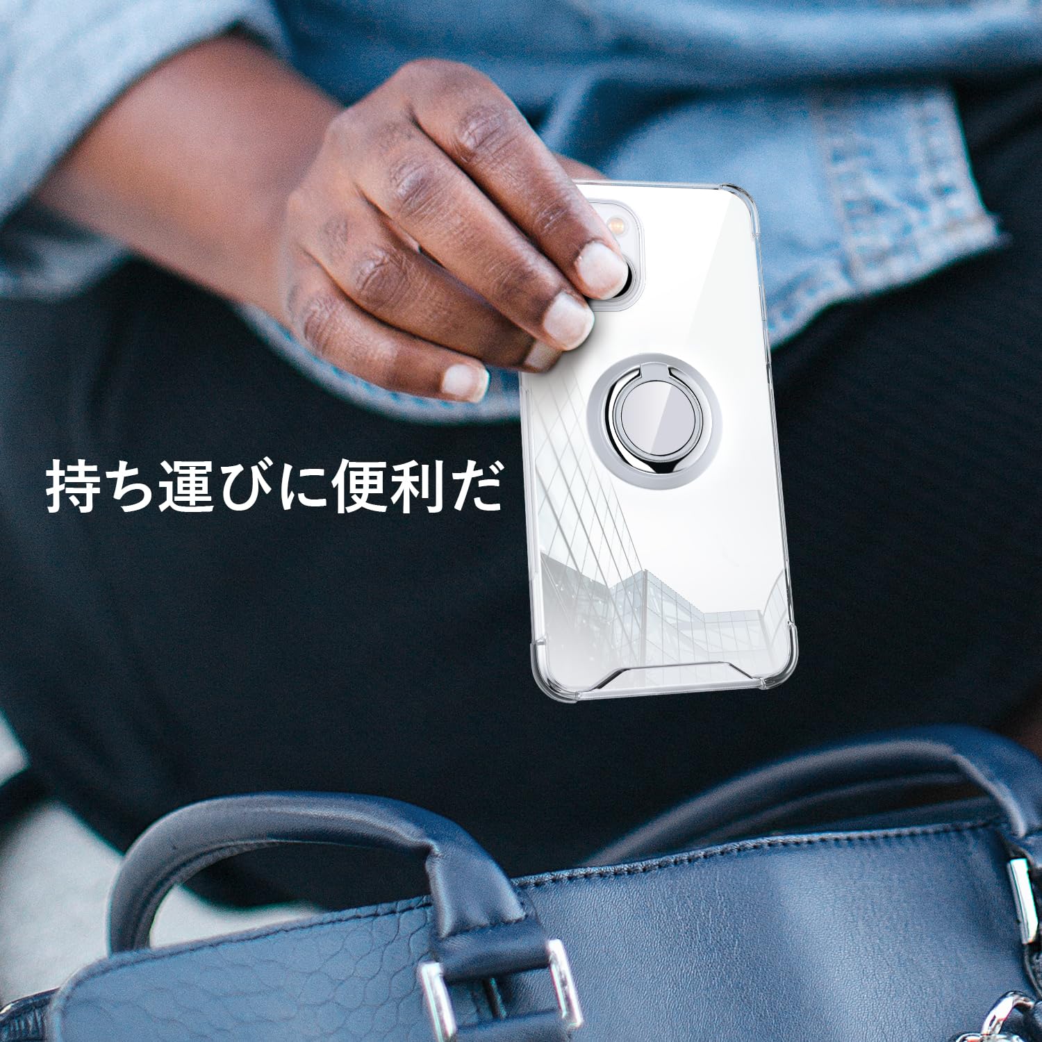 【リング付き&スタンド機能】リングは360度回転可能で、180度の角度調節も可能です。ケースを横置きにするとスタンド機能になり、持たずに動画鑑賞などを楽しむことができます。指をリングに通して一本指で持つことで、片手で携帯電話を操作でき、落下を防止します。