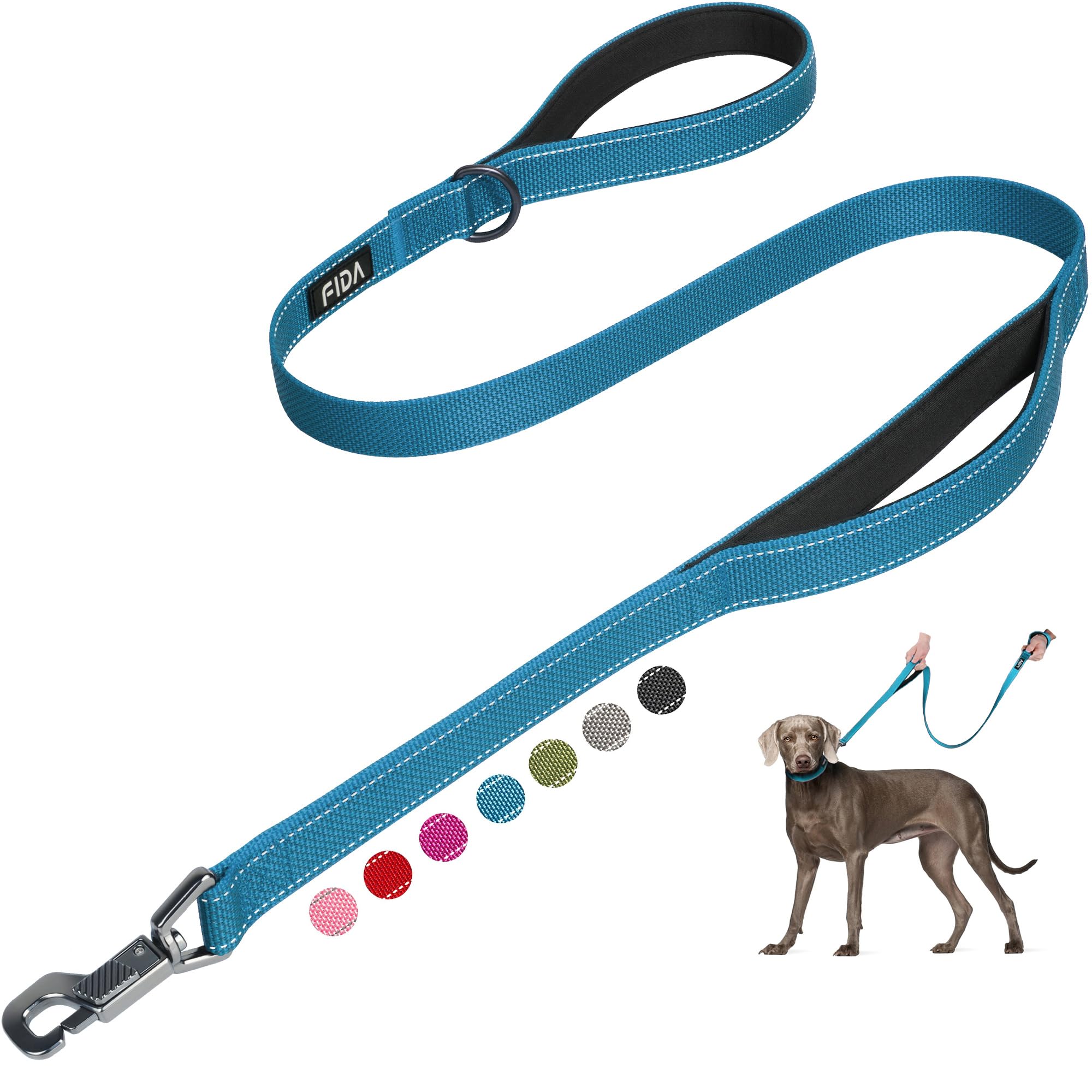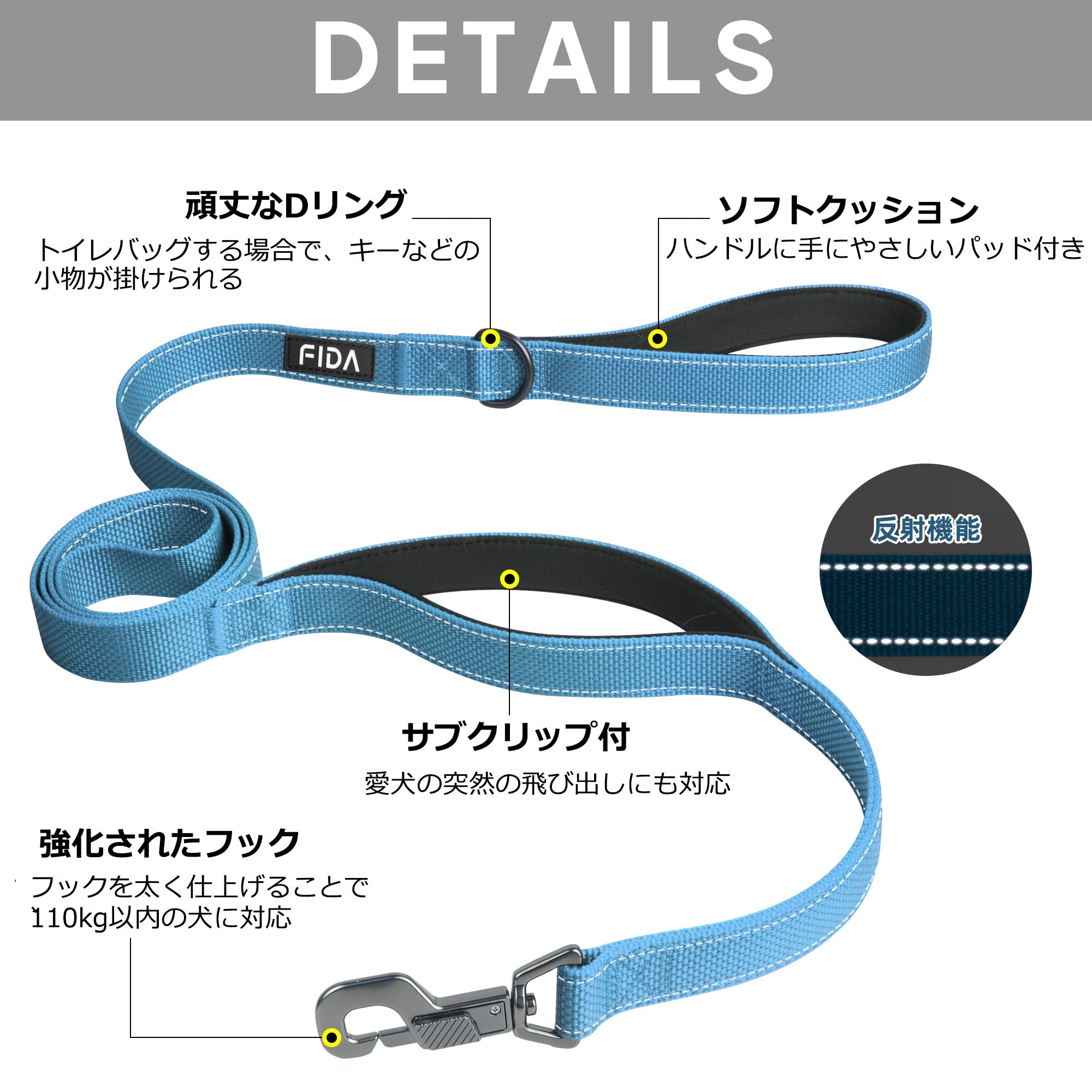 Fida 犬 リード 中型犬 大型犬用リード 持ち手2個 ちやすい 頑丈 訓練用 3M反射材料 ナイロン製 軽量 手袋したまま 耐荷重50kg 散歩グッズ(1.2m, ブルー, 太さ25mm)