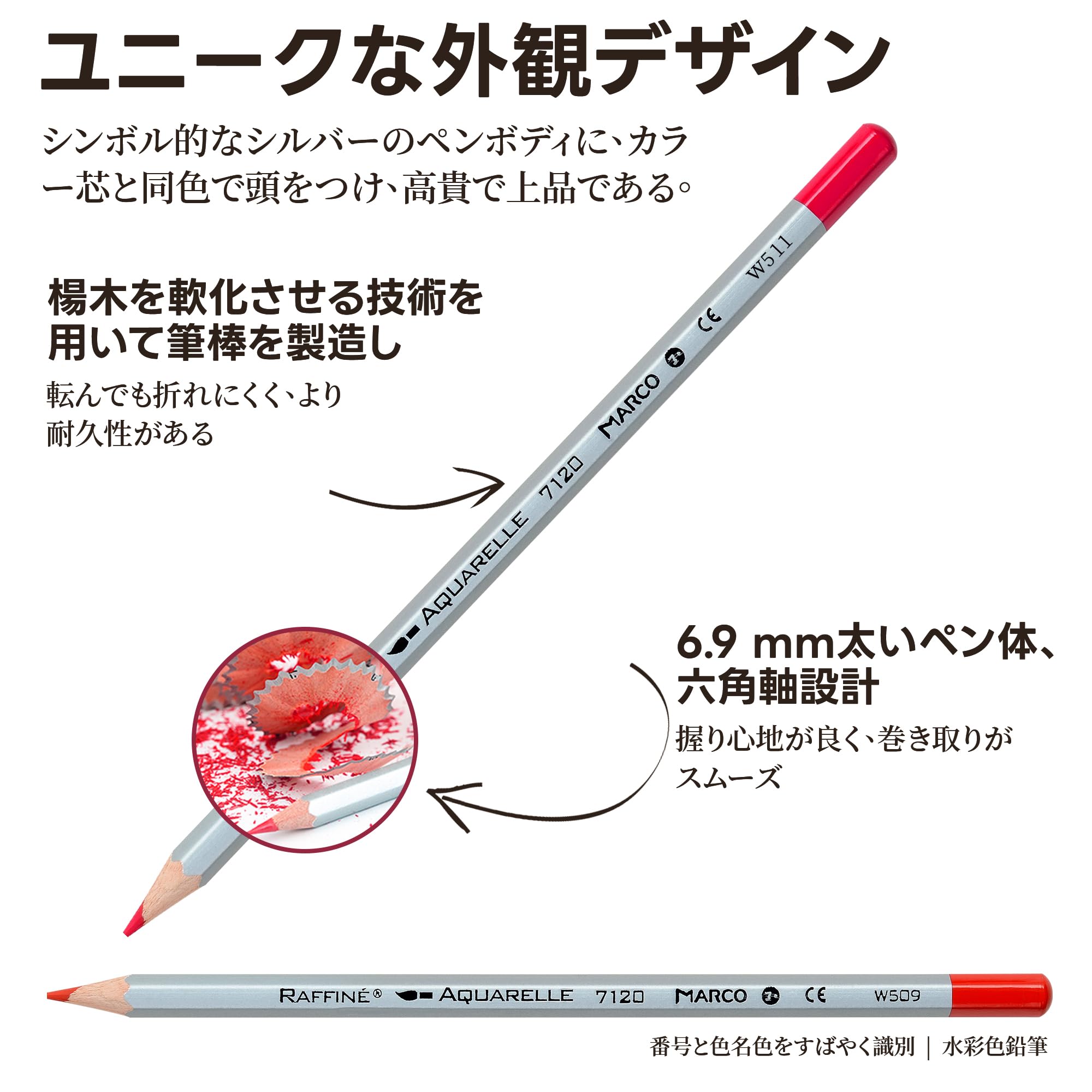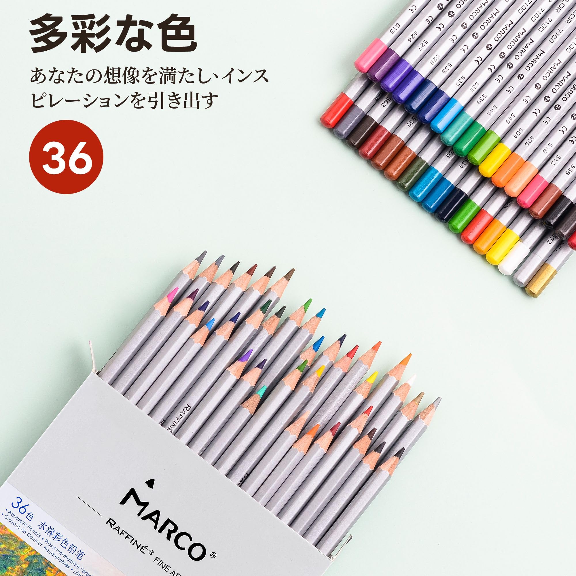 【数量限り】MARCO鉛筆 水性色鉛筆 36色セット 7120 型|6 角軸水溶性 毛筆付属|初心者・絵画愛好者・芸術関係者向け|入学準備・プチギフト適用 スケッチ・イラスト・手帳用