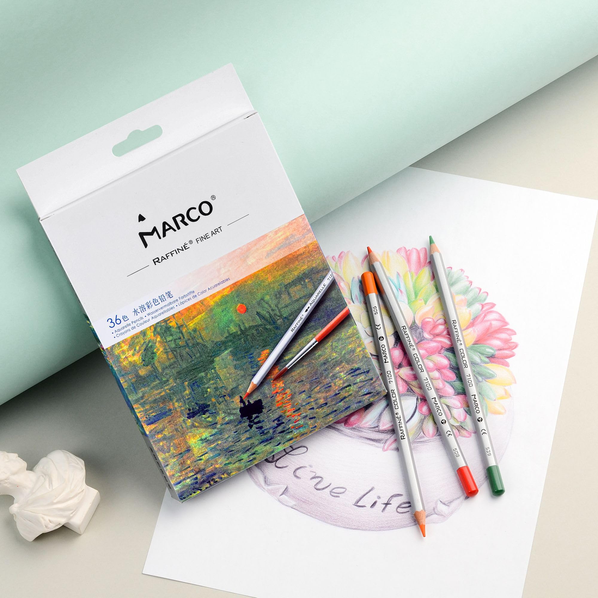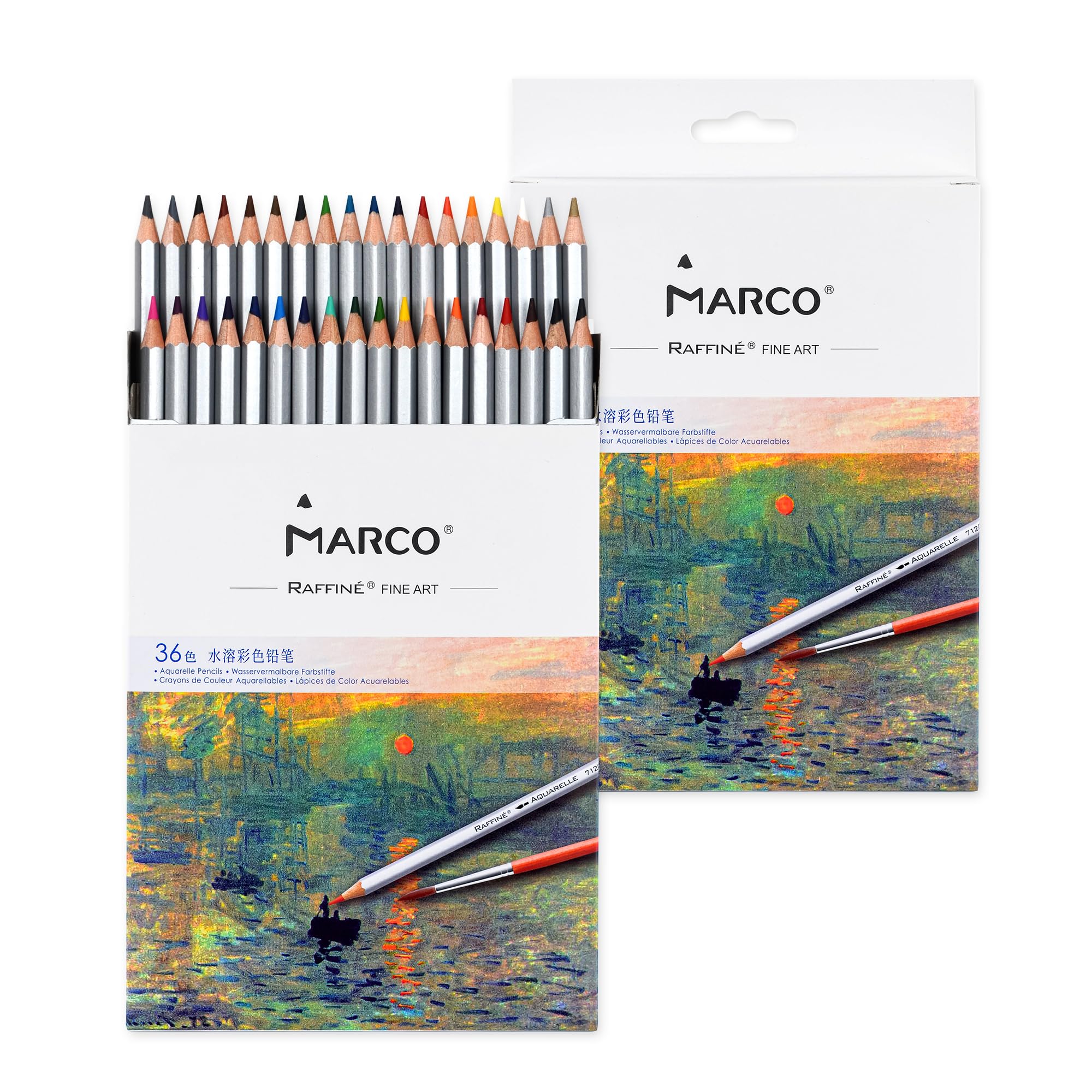 MARCO鉛筆 水性色鉛筆 36色セット 7120 型|6 角軸水溶性 毛筆付属|初心者・絵画愛好者・芸術関係者向け|入学準備・プチギフト適用 スケッチ・イラスト・手帳用