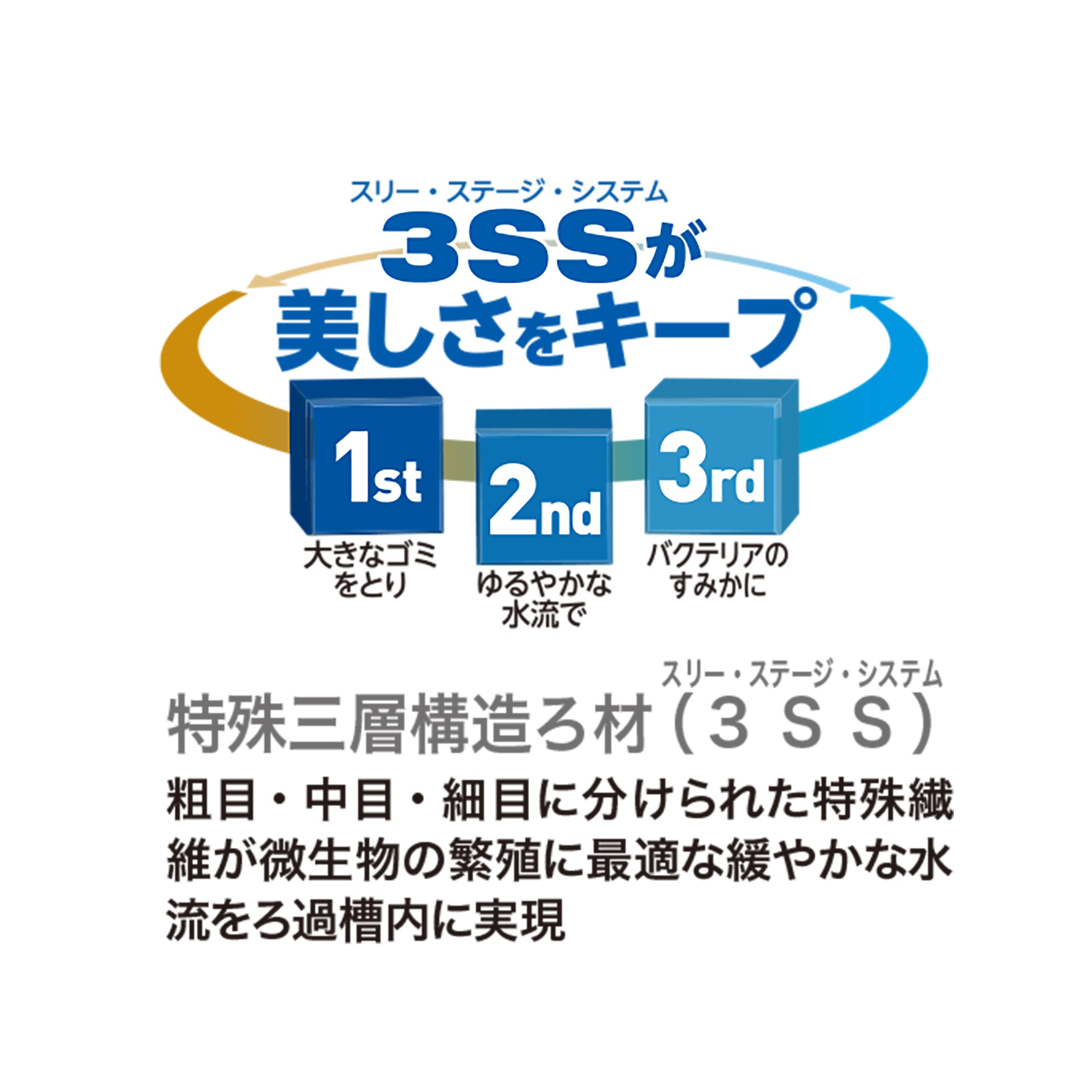 『水作スペースパワーフィットプラス』は優れた静粛性と水槽内で目立たないコーナーデザインでロングセラーとなっている水中ポンプ式フィルターです。