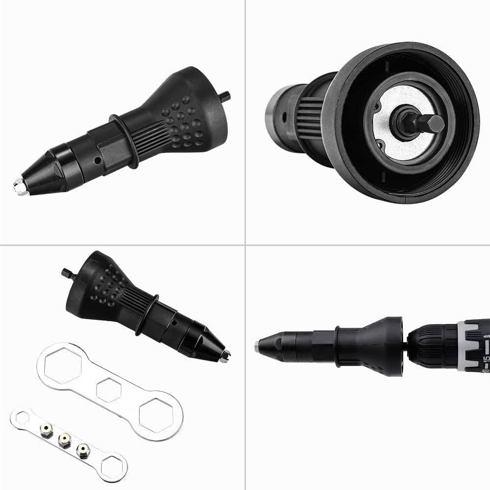 リベッター工具 電動リベッター アタッチメントリベッター リベットガン リベッターナッター ハンドルレンチ ノーズピース 4個付 2.4-3.2-4.0-4.8mm (ブラック)