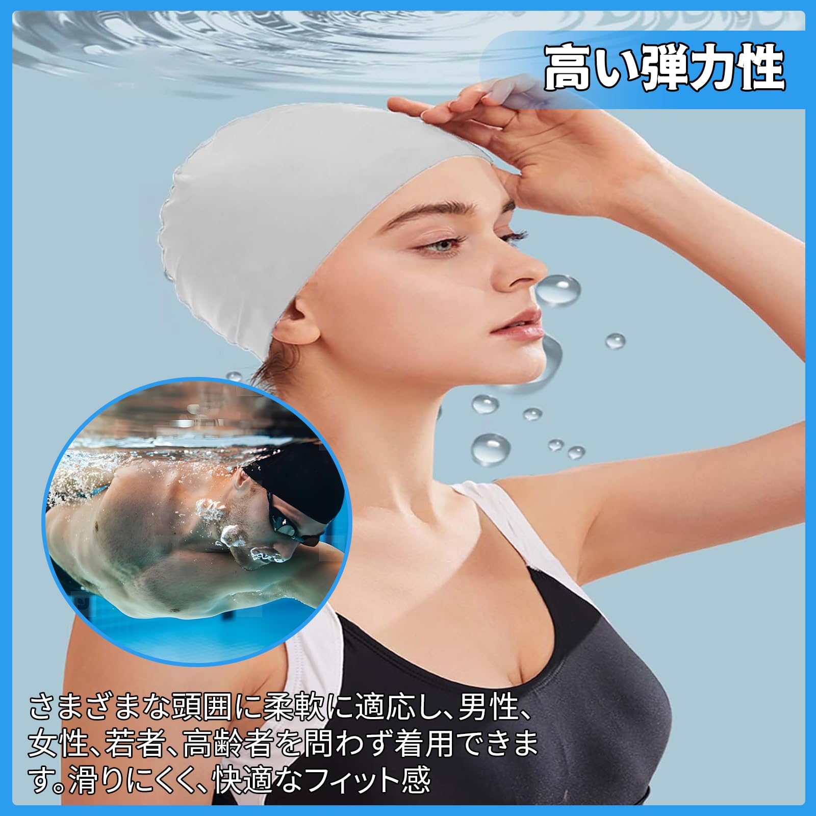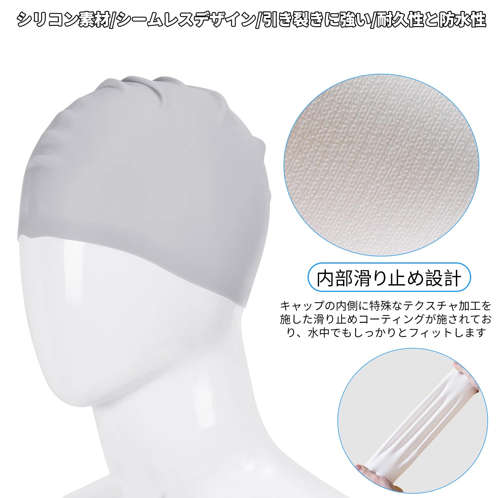 【様々な頭囲に適しています】: 柔らかいシリコン素材で作られており 弾力性があり 頭囲の異なる成人男性と女性に適しており ぴったりフィットし 滑りにくいです