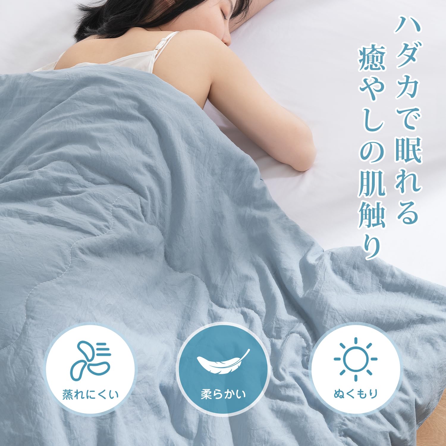 【特価処分】Atokazo 肌掛け布団 ダブル 夏用 超軽量 肌にやさしい 薄手 TEIJIN中綿 防菌防臭 洗いざらし シワ加工 やわらか 速乾通気 冷房対策 洗える 掛け布団 肌掛け キルトケット 180X200cm ライトブルー