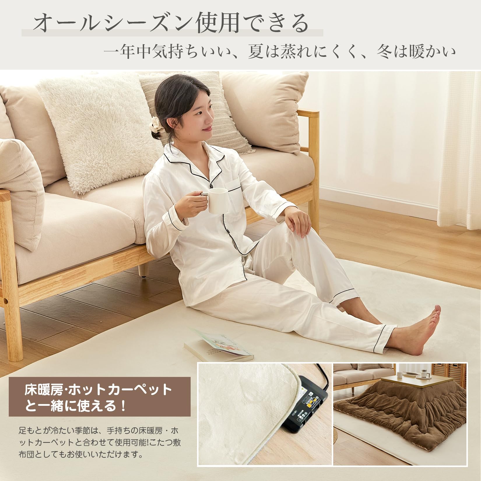 【短い毛足で簡単に掃除】カーペットの表面生地にはフランネル素材を使用し、繊細な毛先でやわらかく、滑らかな手触りを実現しました。短めの毛足でゴミが絡みにくく、一年中快適にお過ごしいただけます。