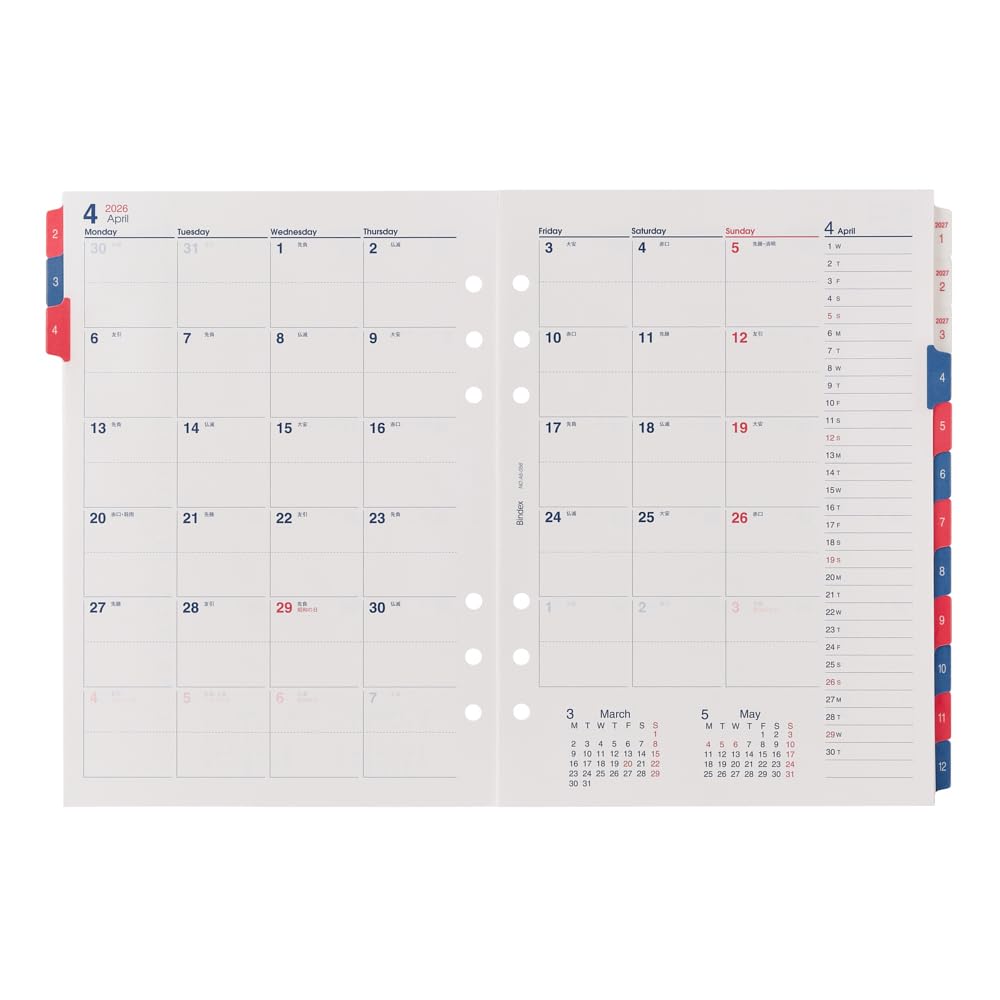 【在庫処分】能率 バインデックス システム手帳 リフィル 6穴 2026年 A5 マンスリー カレンダータイプ インデックス付 A5-056 (2025年 12月始まり)
