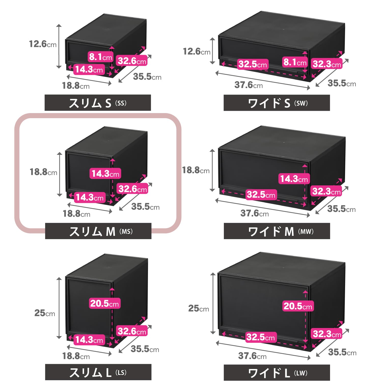 サンカ モジュールケース 組み合わせ自由自在 引き出し収納ケース スリムM ブラック ライフスタイルに合わせて組み合わせができる引き出し収納 スルっと引き出せて スキッと閉まる引き出し ズレを防ぐラバーストッパー ロック機構で重ねても安定 日本製 収納ボックス 衣装ケース 小物収納 黒 (18.8×35.5×18.8cm) D2SC-MSBK