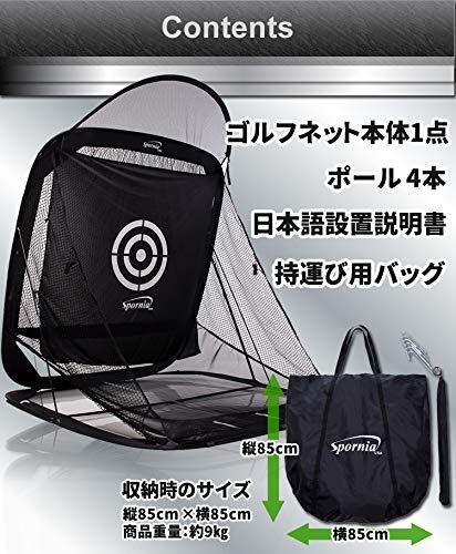 ※商品動画は215㎝のレギュラーサイズとなります。 ?総計300万個販売したゴルフ大国アメリカで実績あるブランド! ?ゴルフネット 練習 自動返球 Spornia スポーニア 黒色 簡単 設置 野外 室内 初心者 防球ネット アプローチ ドライバー スウィング 練習器具 消音 高品質◆ルーフネットを使用する場合は、設置に多少時間がかかります。