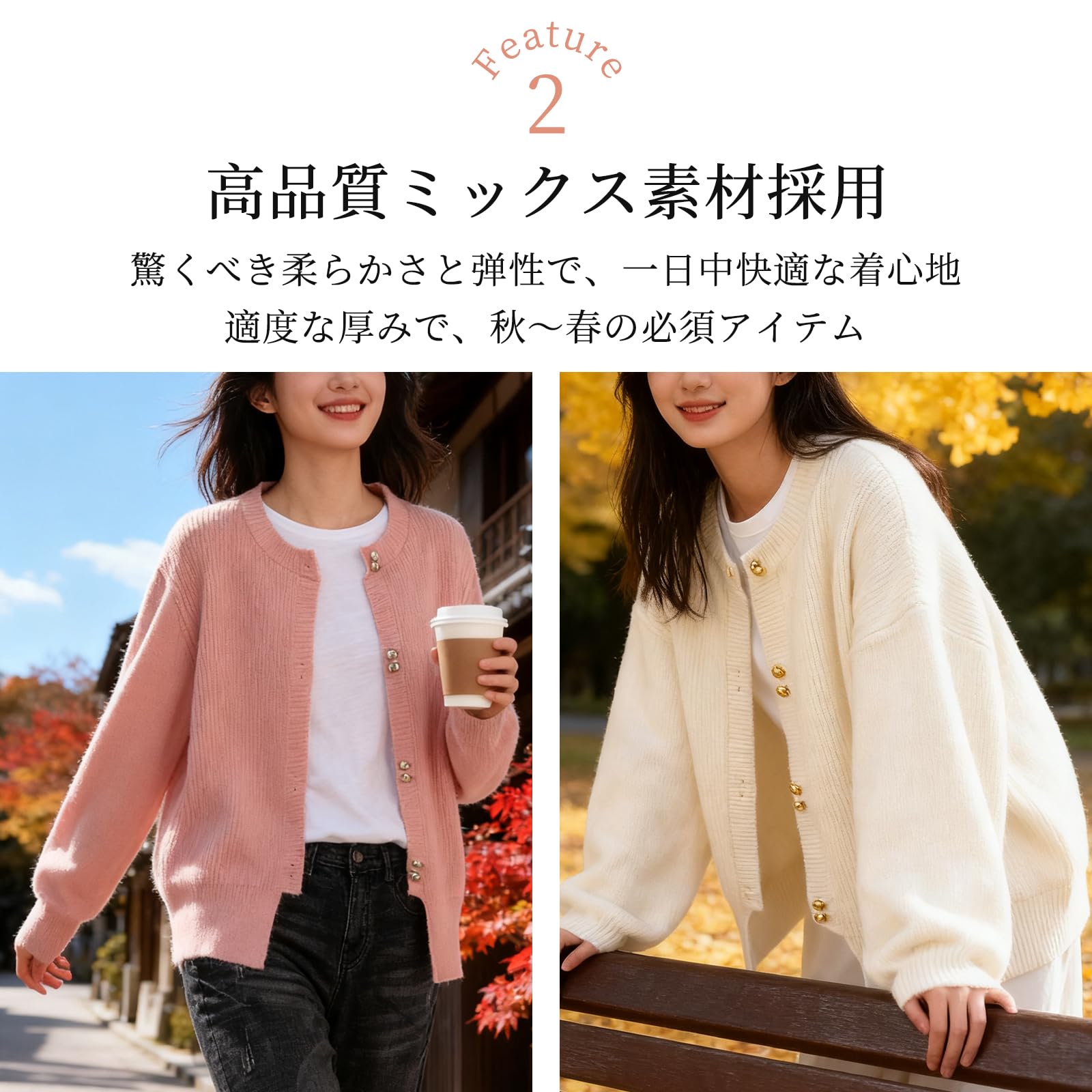 【ニットカーディガン】この優れたニットカーディガンは、高品質な混合生地を使用しており、その特徴は暖かさと柔らかさを兼ね備えています。日常の着用にゆったりで、伸縮性があり、肌触りが快適でゆったりとした着心地を提供します。適度な厚みがあり、涼しい季節の外出にも単独で着用することができます。