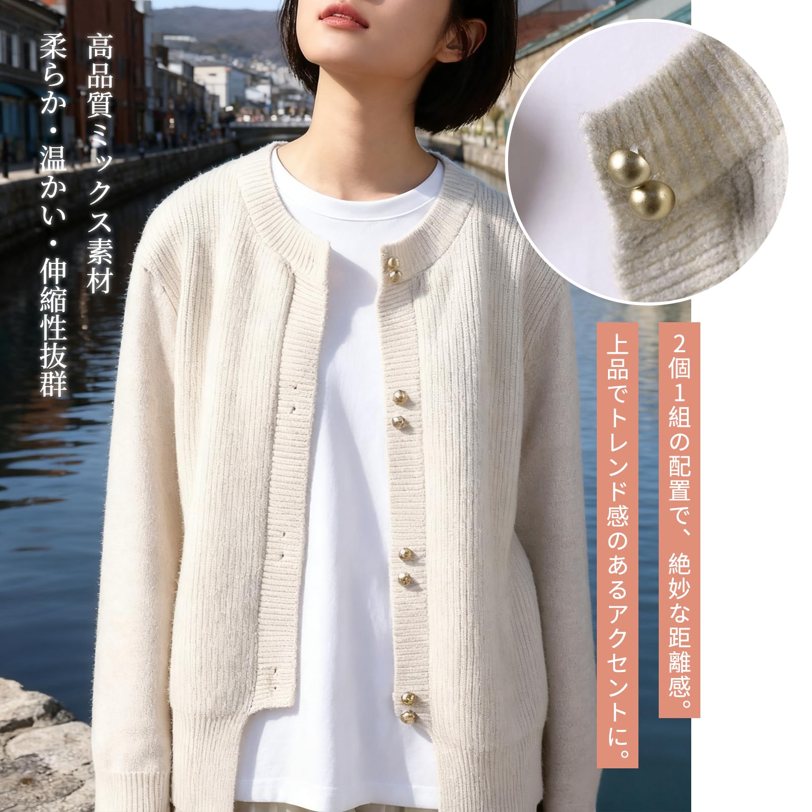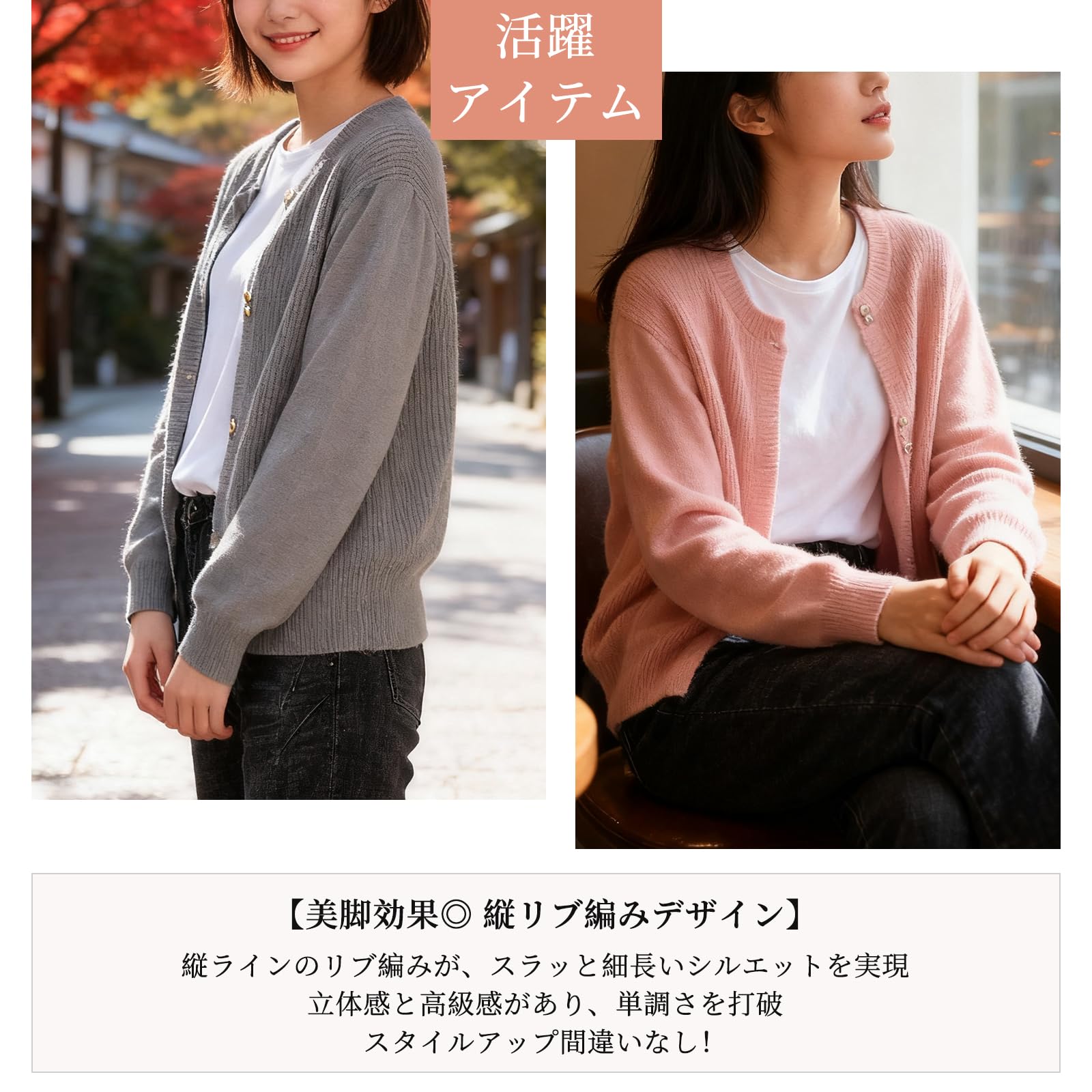 [Gfuracefuliayer] ニット カーディガン レディース - 長袖 前開き リブ ニットトップス ボタン付き 肌に優しい ゆったり アウター シンプル おしゃれ 通勤 デート オフィス 無地 春 秋 冬