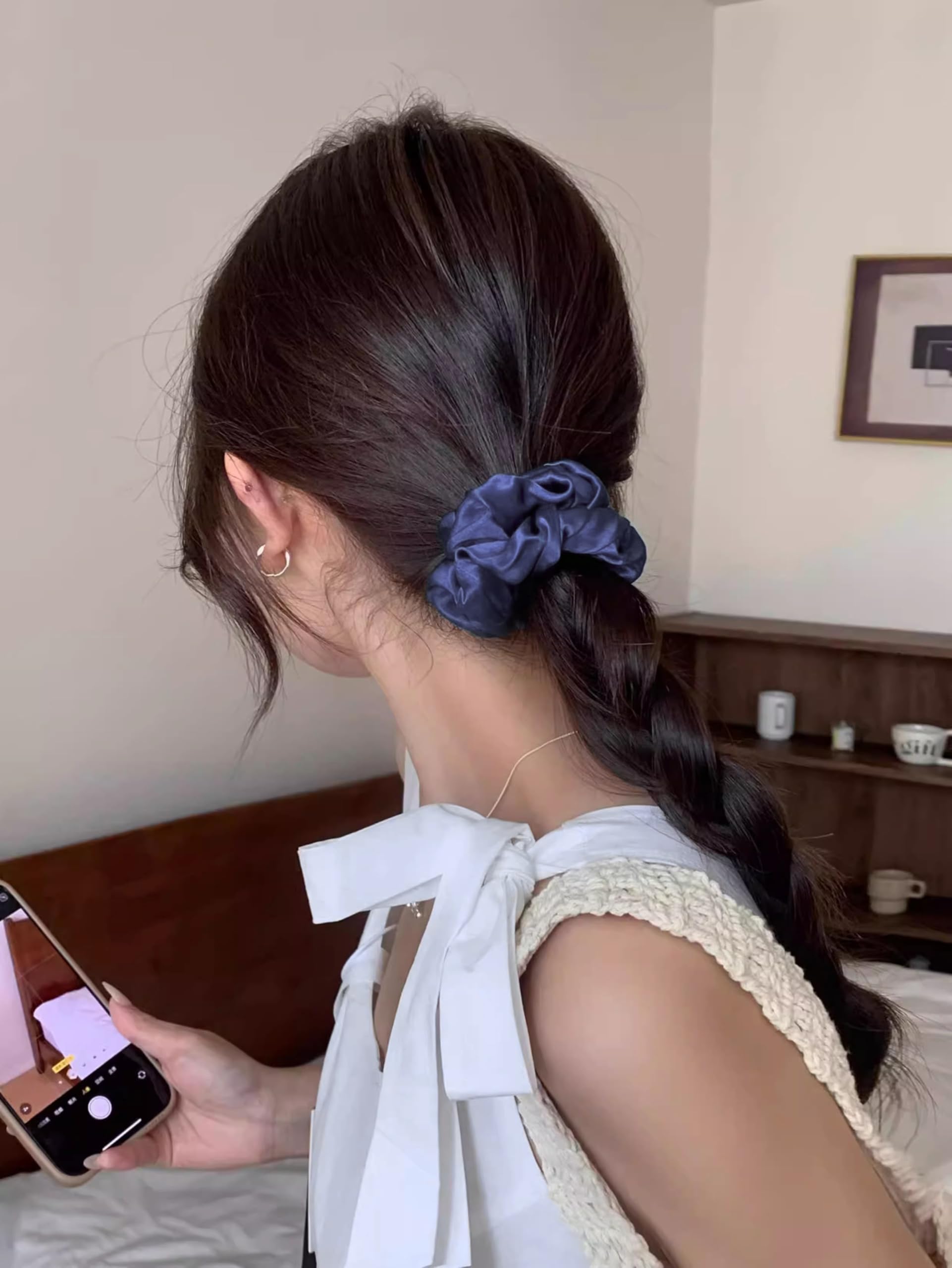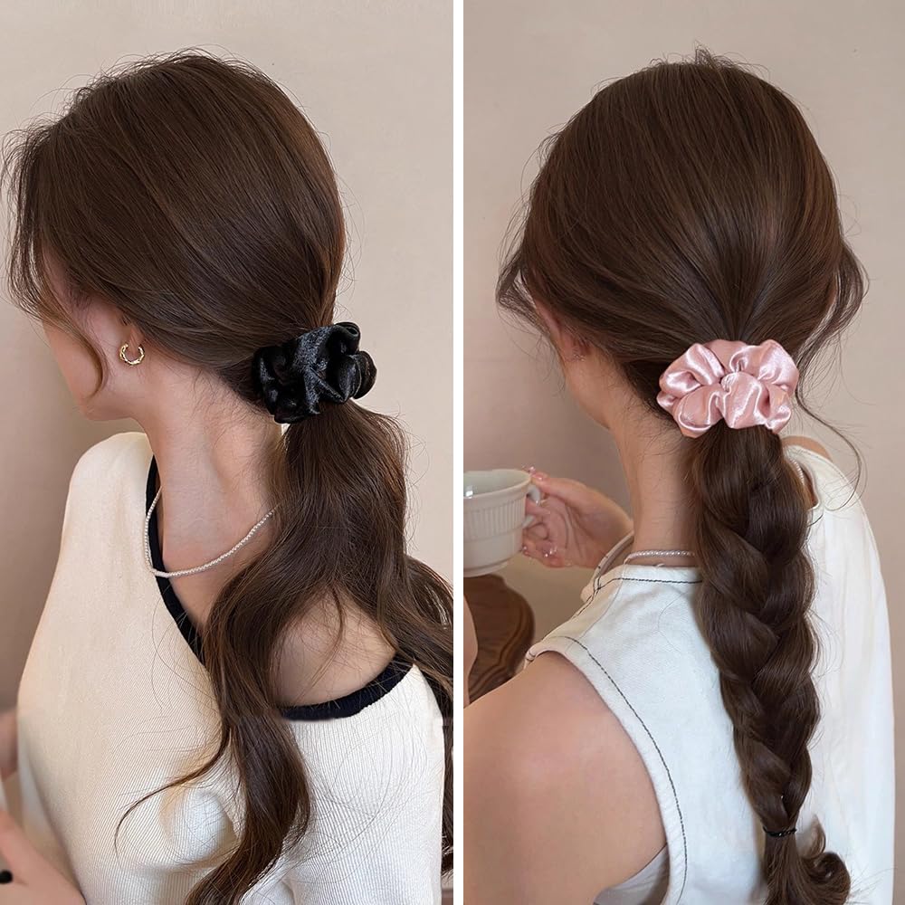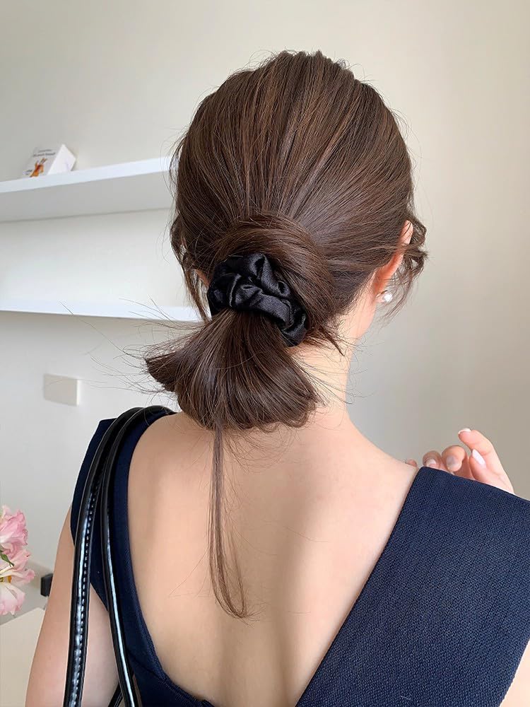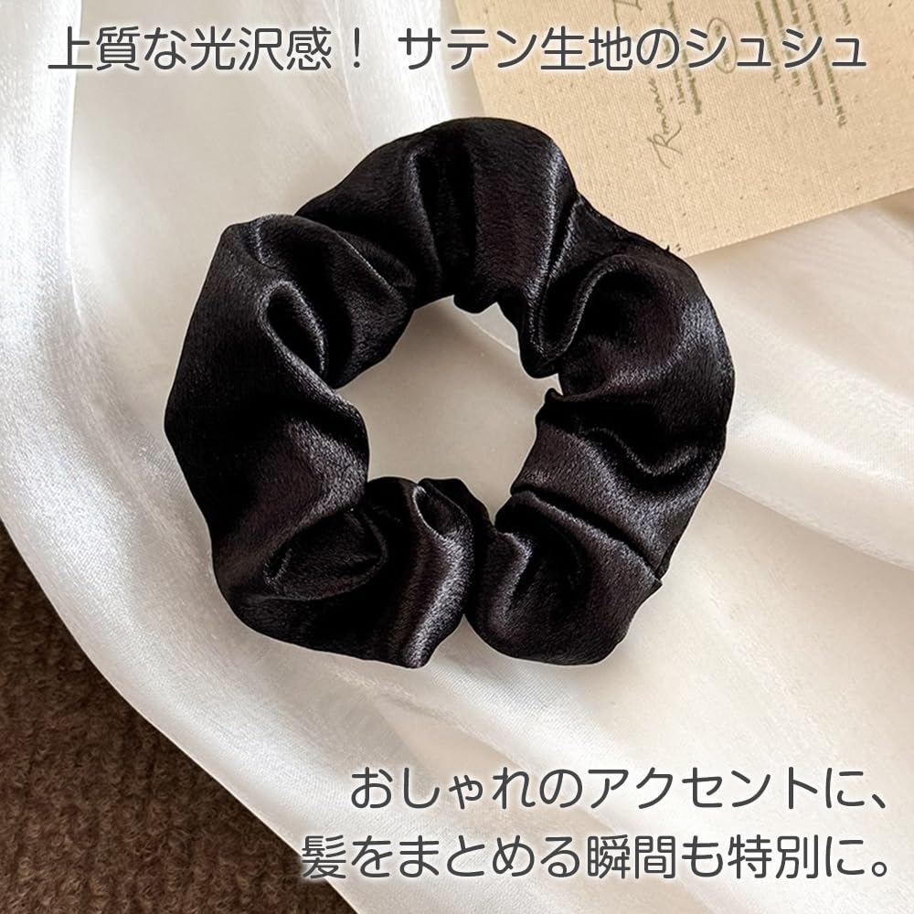 【髪に優しい設計】肌触りの良いサテン生地と適度な弾力性のあるゴムを採用しているため、長時間つけても頭皮や髪に負担がかかりません。結んだ時に跡が残りにくく、ふんわりとした自然な仕上がりに。
