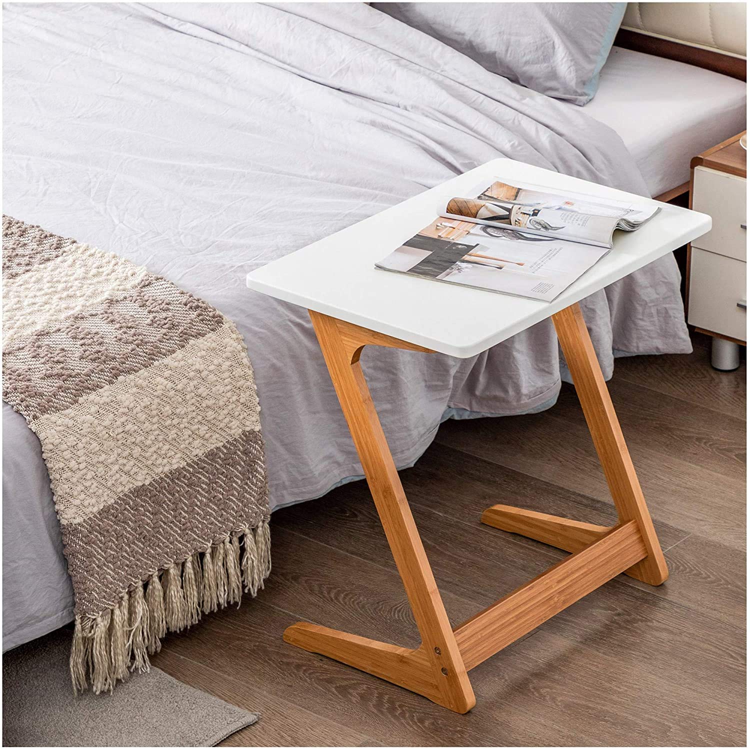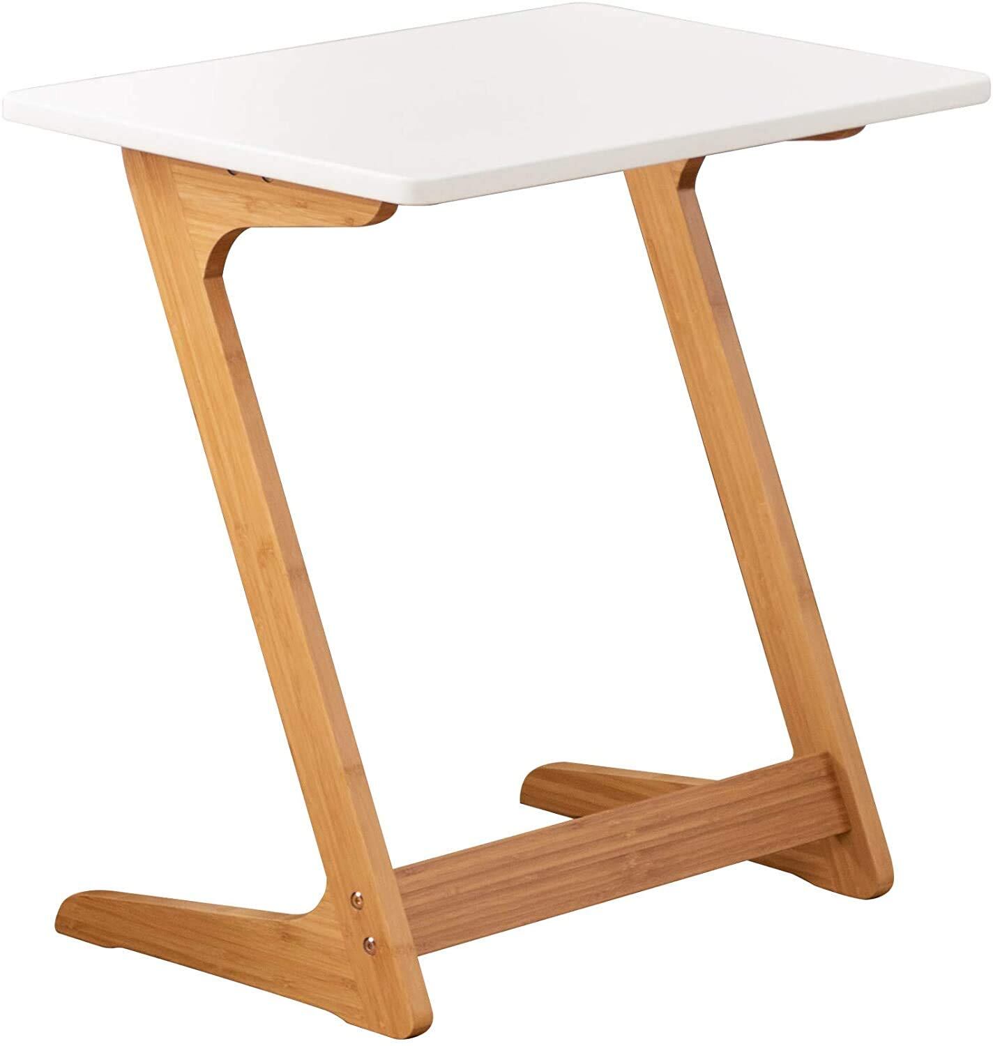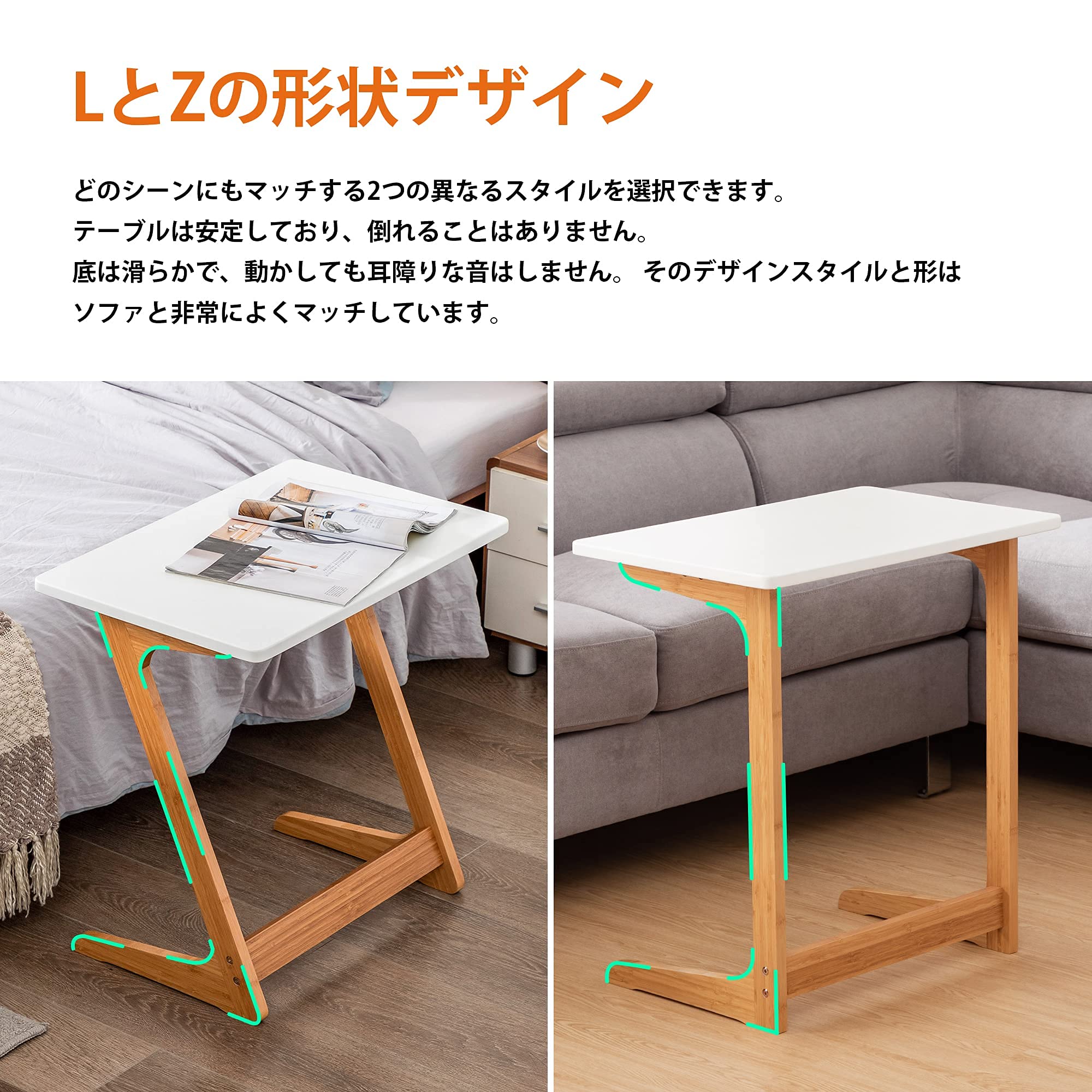 Forevich 竹製サイドテーブル Z字型 ベッド ソファサイドテーブル リビング パソコン コーヒーテーブル 白い色 質感良い 多機能