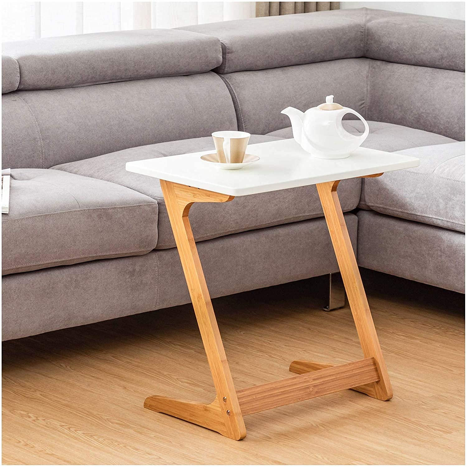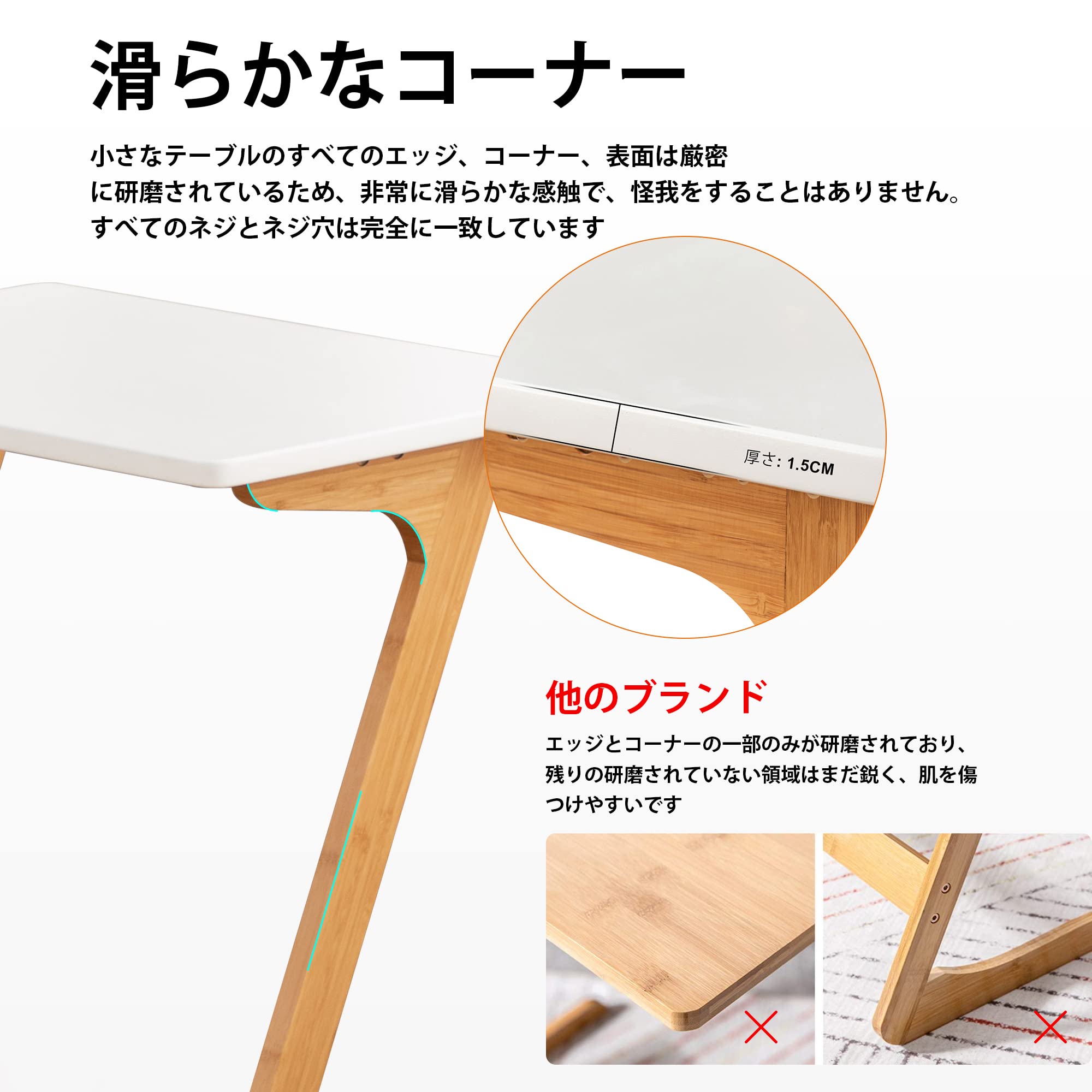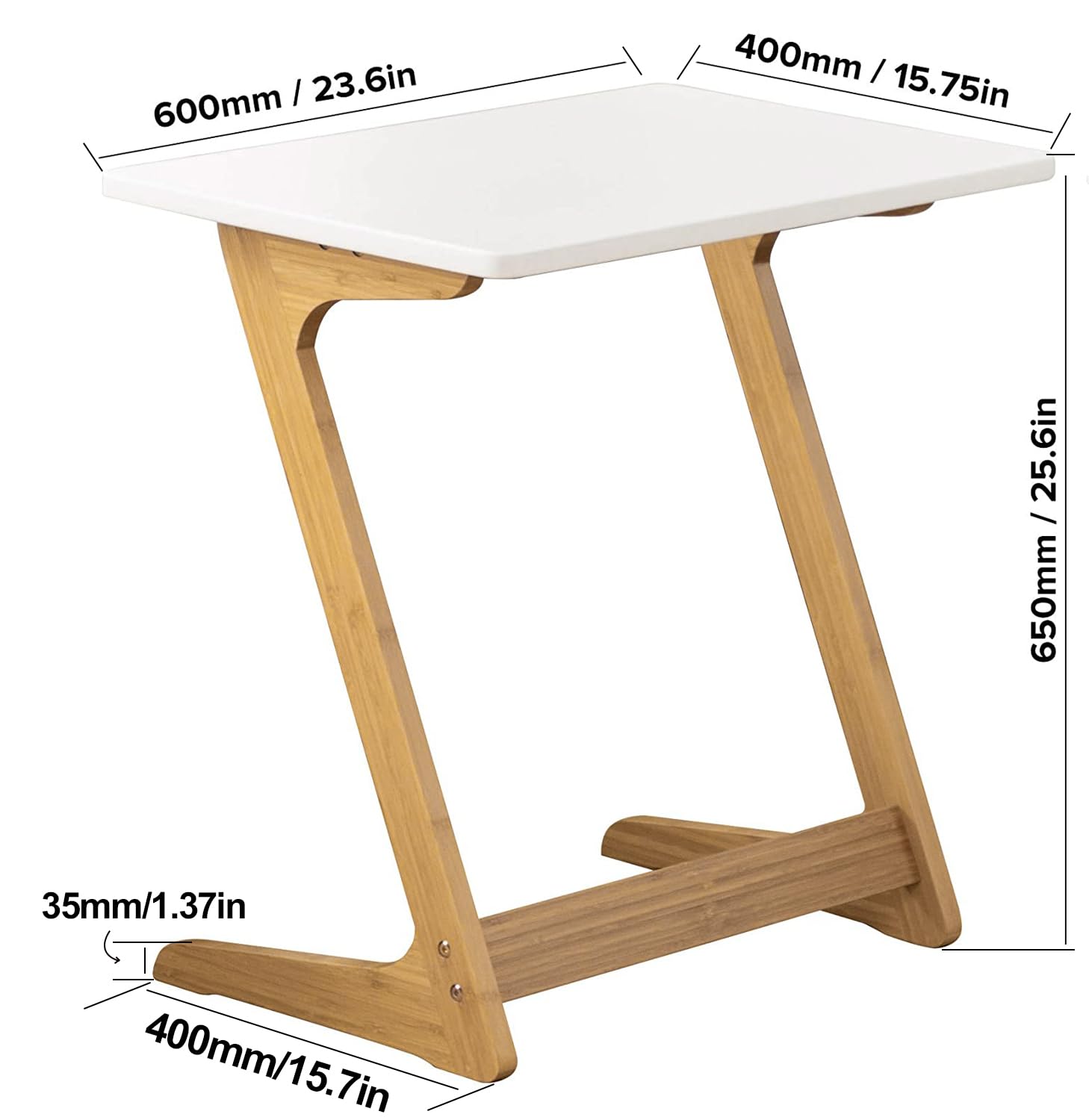 Forevich 竹製サイドテーブル Z字型 ベッド ソファサイドテーブル リビング パソコン コーヒーテーブル 白い色 質感良い 多機能