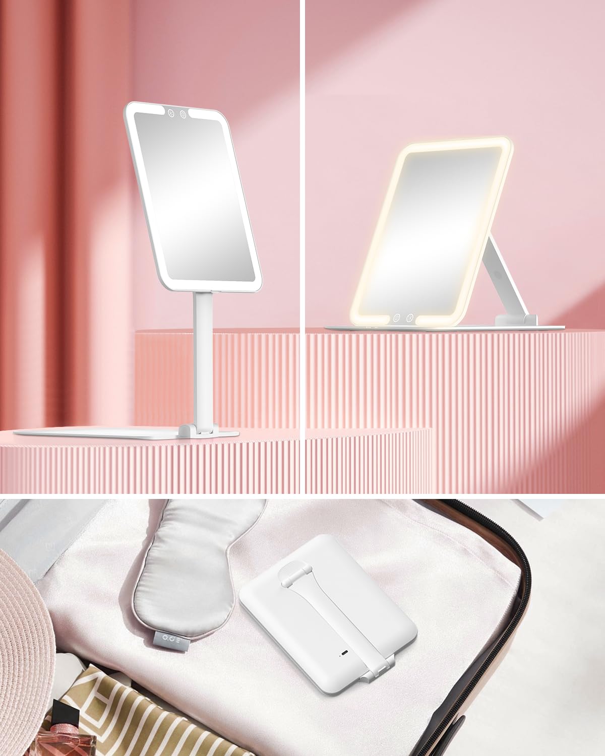 Gospire 化粧鏡 折立鏡ミラーメイク 卓上 ライト付き 女優ミラー led化粧鏡 3光色 無段階調光 角度は自由に調整折立鏡 卓上ミラー 折りたたみ鏡(ホワイト)