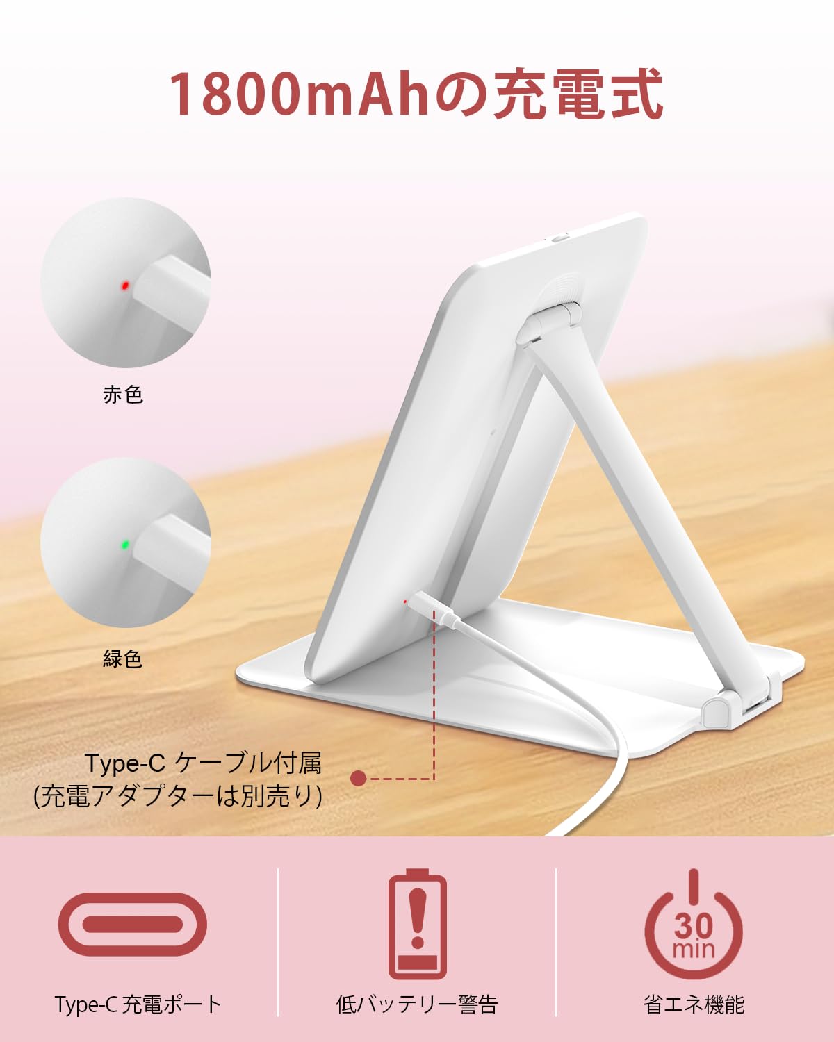 【1800mAhの充電可能なバッテリーとワイヤレス使用】ワイヤレスで充電可能なデザインのワイヤレスミラーの自由をお楽しみください。1800mAhの大容量バッテリーにより、一度の充電で数週間にわたってミラーを自由に使用することができます。旅行者や整理整頓された化粧台が好きな人に最適な機能です。電線不要でいつでもどこでもミラーを利用できる究極の便利さをお楽しみください。