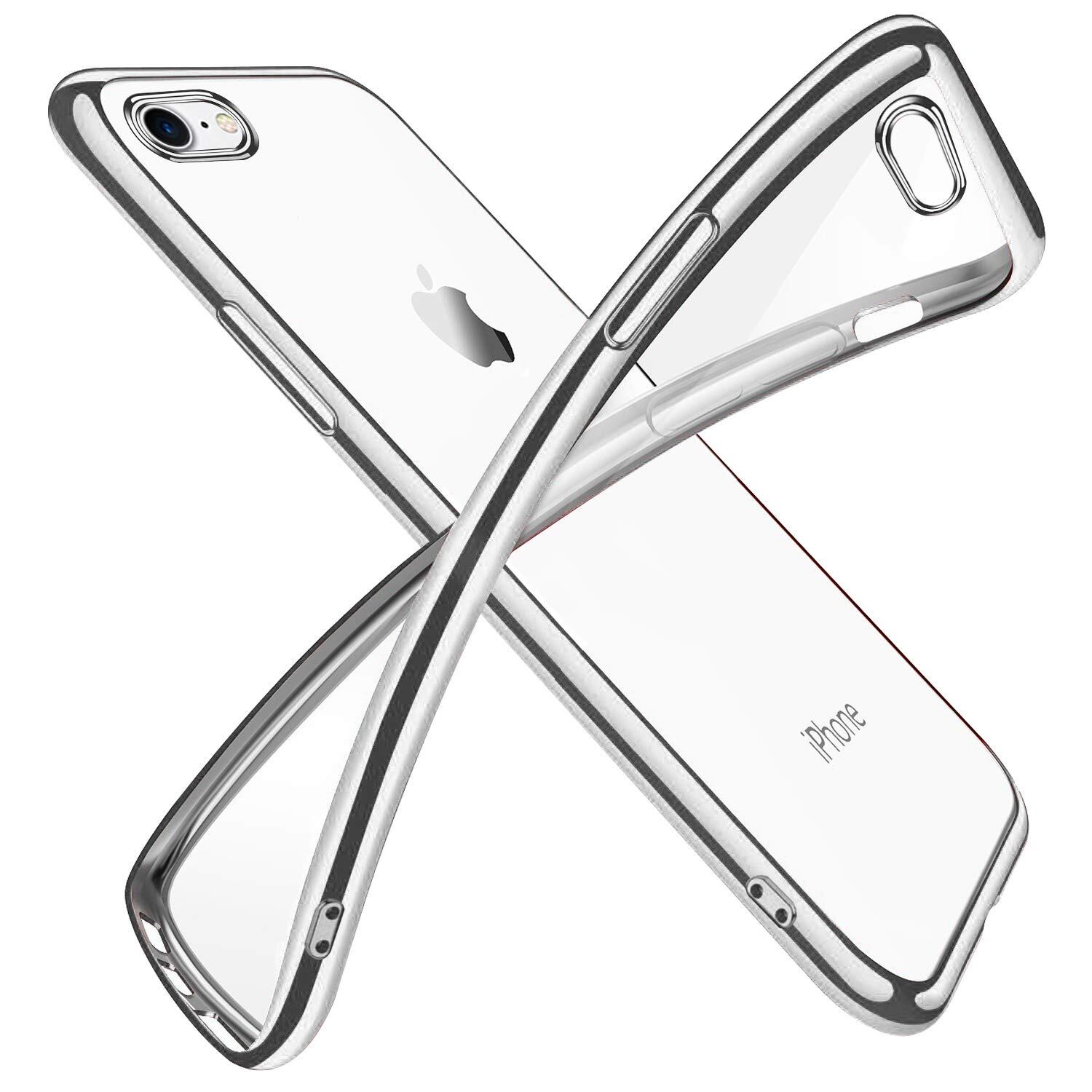 iPhone6 ケース iPhone6s ケース クリア 透明 tpu シリコン メッキ加工 スリム 薄型 4.7インチ スマホケース 耐衝撃 ストラップホール 黄変防止 一体型 人気 携帯カバー シルバー