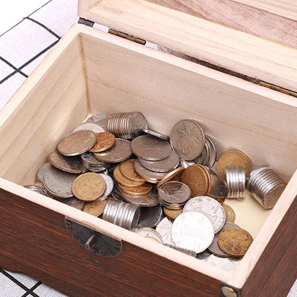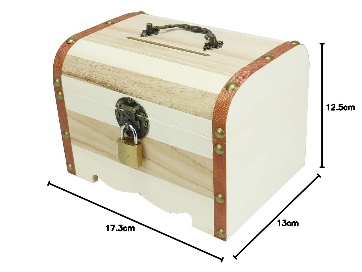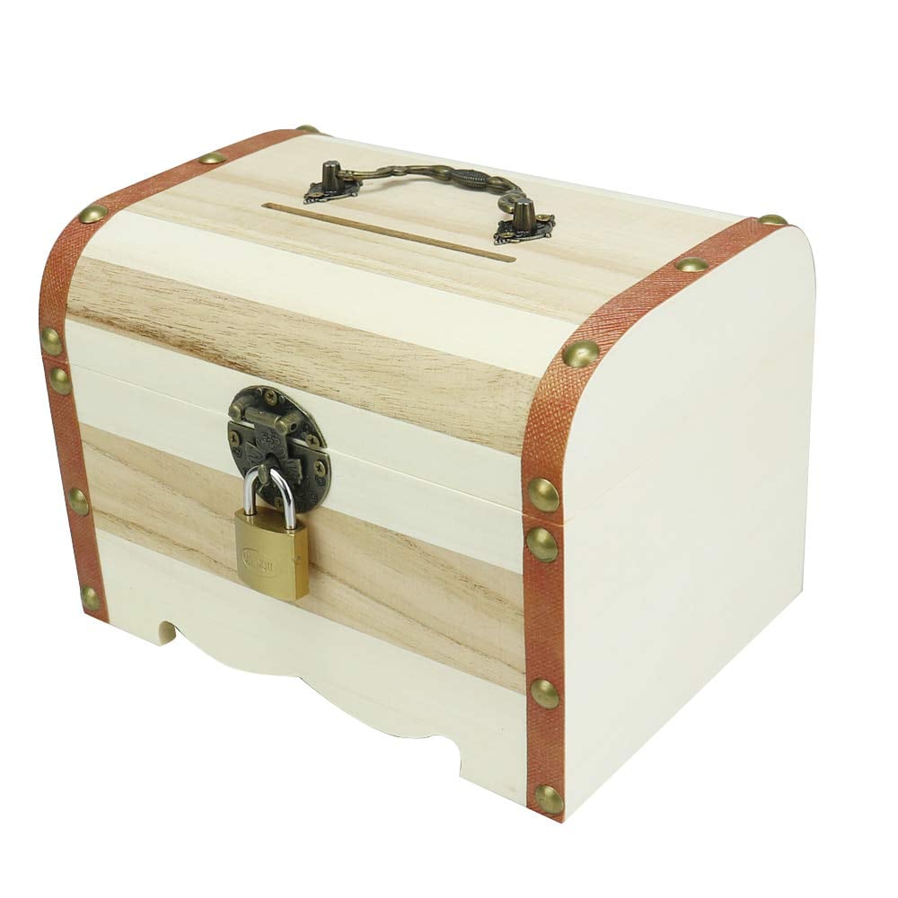 TSfactory アンティーク調 鍵付き宝箱 木製 貯金箱 南京錠 収納 小物入れ (ホワイト)