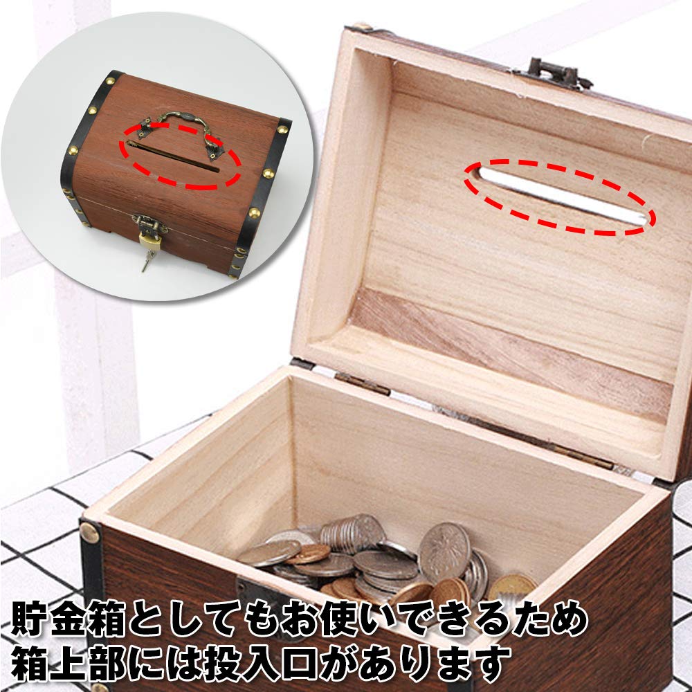 宝箱として楽しむのはもちろん、貯金箱としてもお使いできるため、箱上部にはお札も入れることのできる投入口があります。