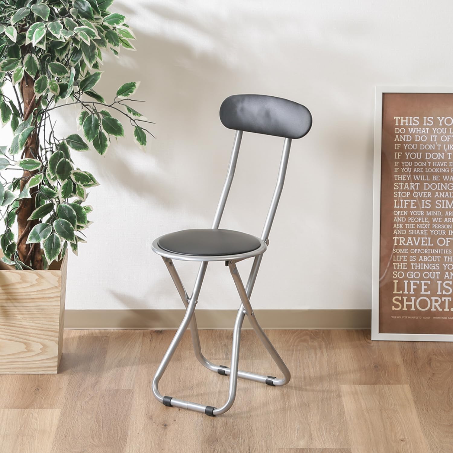 ■背付で折り畳みタイプのオフィスにも合うシンプルなデザイン