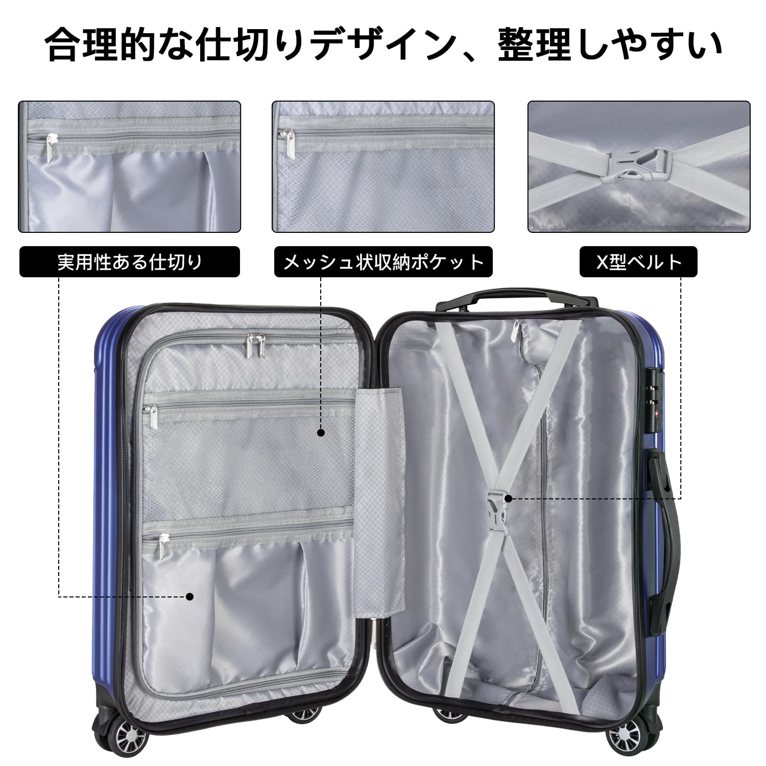 【合理的な仕切りデザイン】高品質のポリエステル生地で、柔らかいかつ快適です。密閉されたU字型コンパートメントは荷崩れ防止だけでなくプライバシー保護効果もあります。メッシュポケットにより、収納しにくい小物でもは一目でわかります。X型ベルトが完備され、荷物崩れを完全防止。収納力抜群、たくさんの小物を入れることはできます。