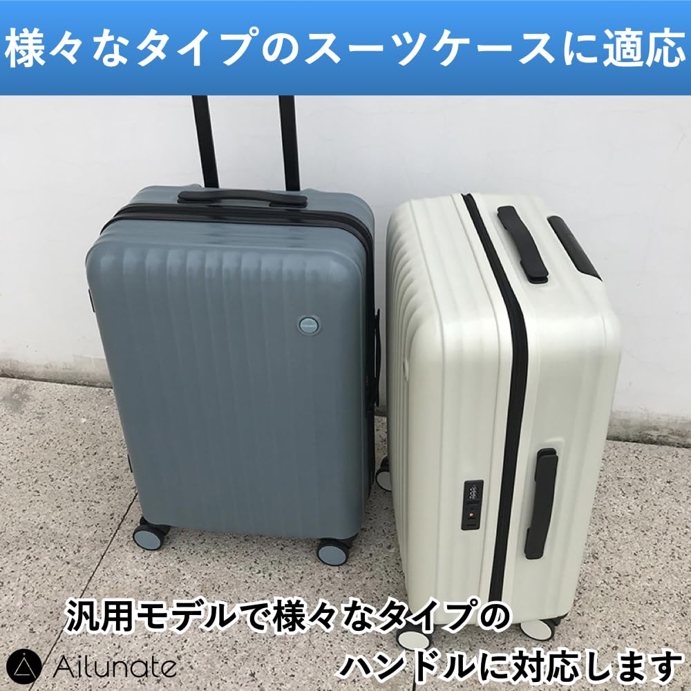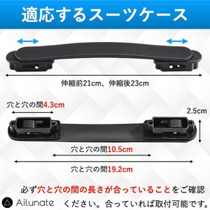 ?【適応するスーツケース】「適応するスーツケース」と書かれた画像をご確認ください。スーツケースの内側のファスナーを開け、ネジで固定されているハンドルを取り外し、ネジ穴からネジ穴までの長さを測定してください。必ず穴と穴の間の長さが合っていることをご確認ください。穴と穴の間の長さが合っていれば本製品を取り付けることができます。