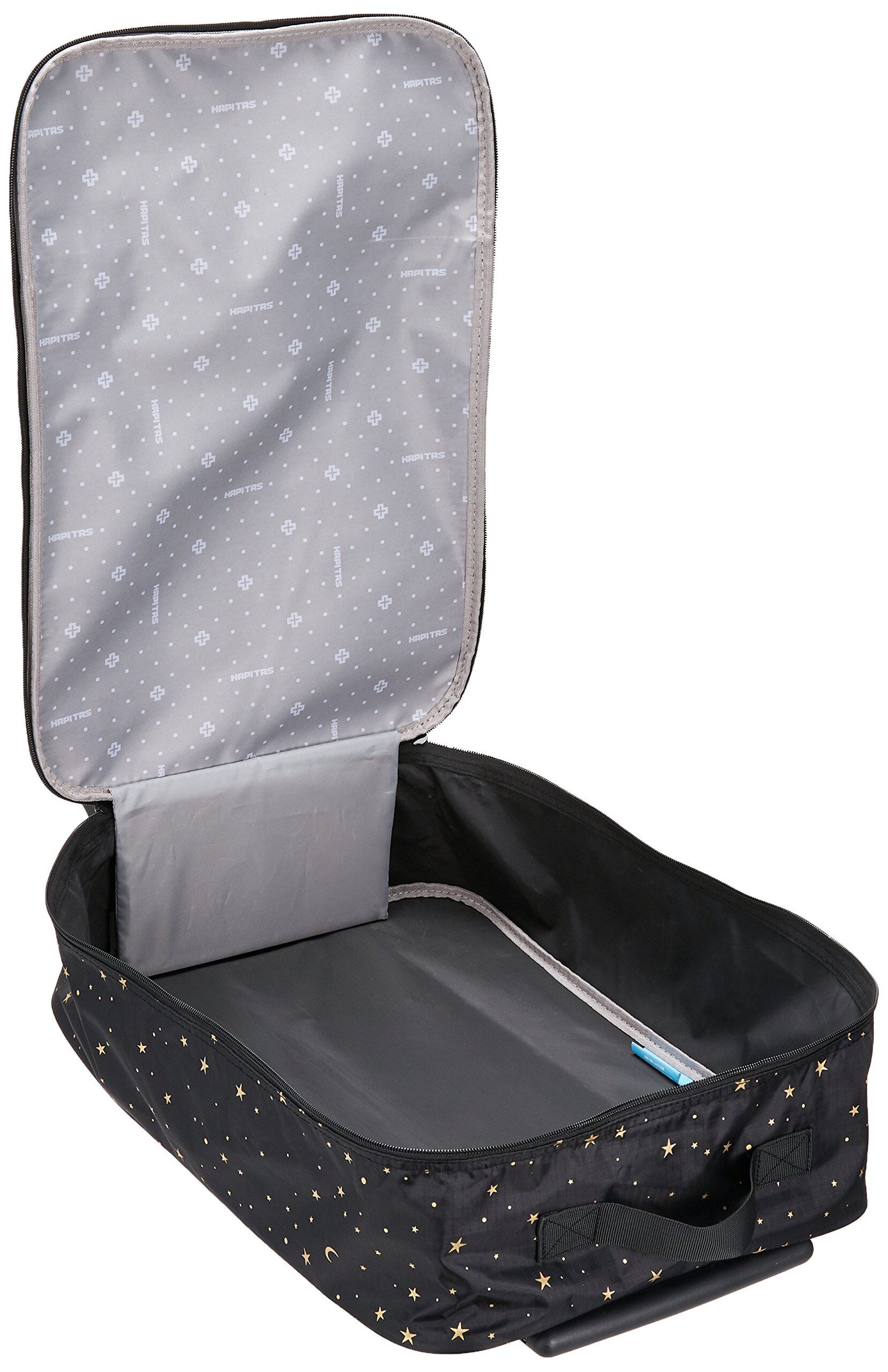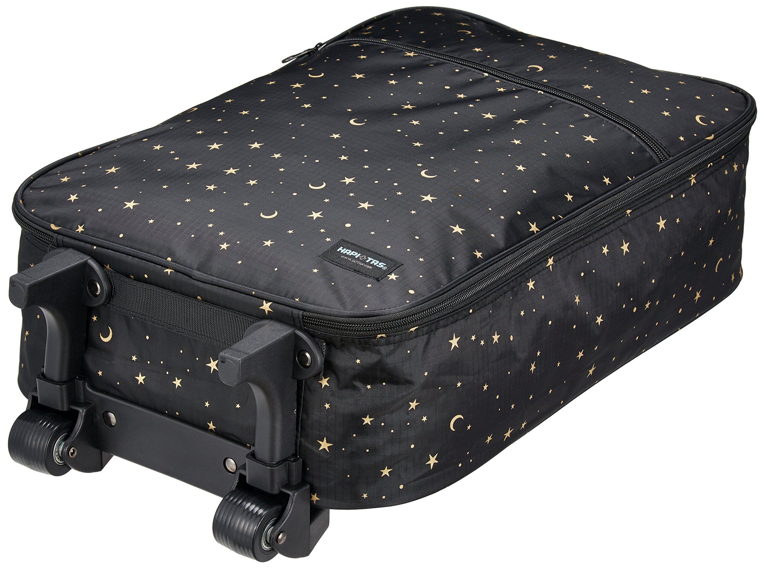 トラベルアイテムをプロデュースする「シフレ」のオリジナルブランドである「ハピタス」。 今回入荷したのは、遊び心のあるプリント生地を使用したキャリーカートです。 使用しない時はコンパクトに折りたたむことができるので、置き場に困ることがありません。 2輪タイプのキャスターが付いているため、荷物をたくさん入れてもスムーズに運ぶことができます。 伸縮式のキャリーバーの他にトップハンドルを配しているので、階段の昇降もラクラク。 フロントにジップポケットを備えているから、すぐに取り出したいアイテムを収納するのに便利。 メインコンパートメントはダブルファスナー仕様で、サイドまでしっかり大きく開きます。 国内線100席以上機内持ち込み対応サイズで、1~2泊程度の旅行におすすめ。 ショッピングなどにも活躍してくれるので、なにかと重宝しそうです。