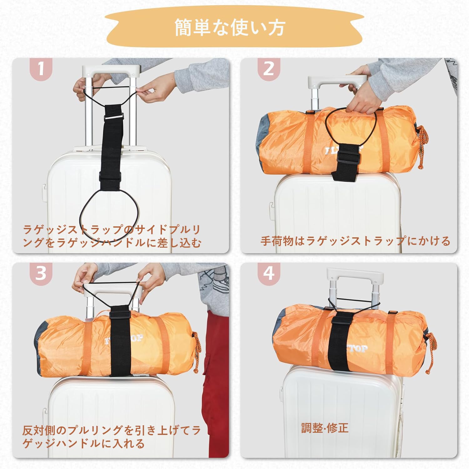 ![【特価処分】[Marcea] 旅行便利グッズ バッグとめるベルト 便利グッズ 多用 調整可能 軽量 荷物用弾力固定ベルト ずり落ち防止](https://baseec-img-mng.akamaized.net/images/item/origin/1bb106a00e86292f2c6da378e7ea9c59.jpg?imformat=generic)