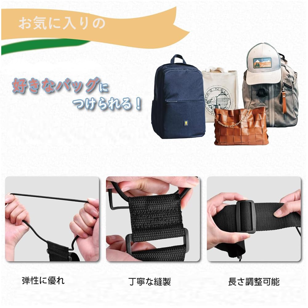 【高品質なゴム素材を使用、耐磨性、耐久性UP】ブロードバンドナイロン素材が作成されました、耐久性・耐摩耗性があります。金具をABS樹脂に変更し、軽量化とバッグなどを傷つけにくくなりました。