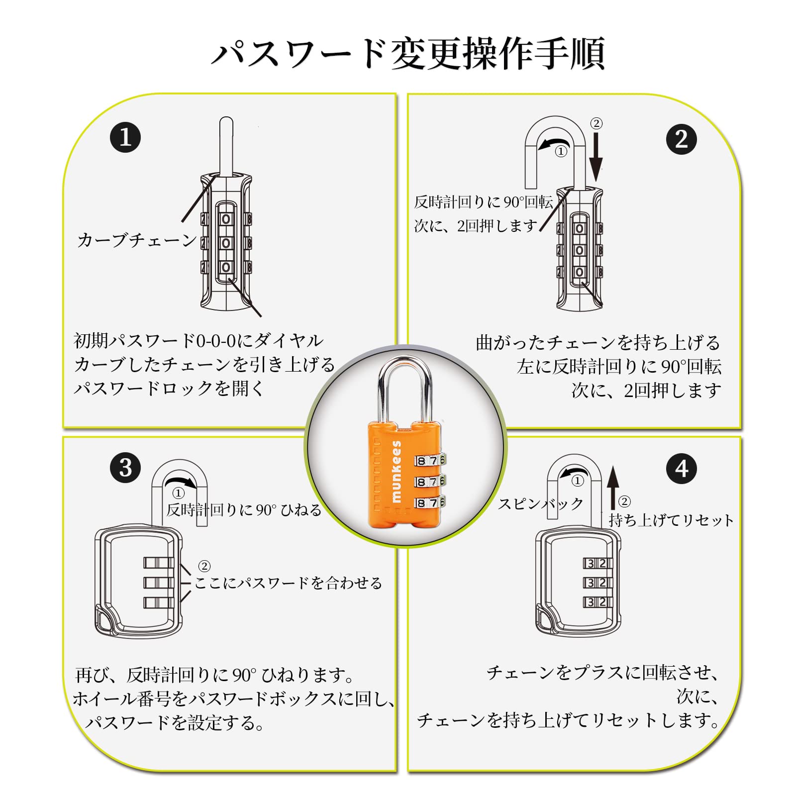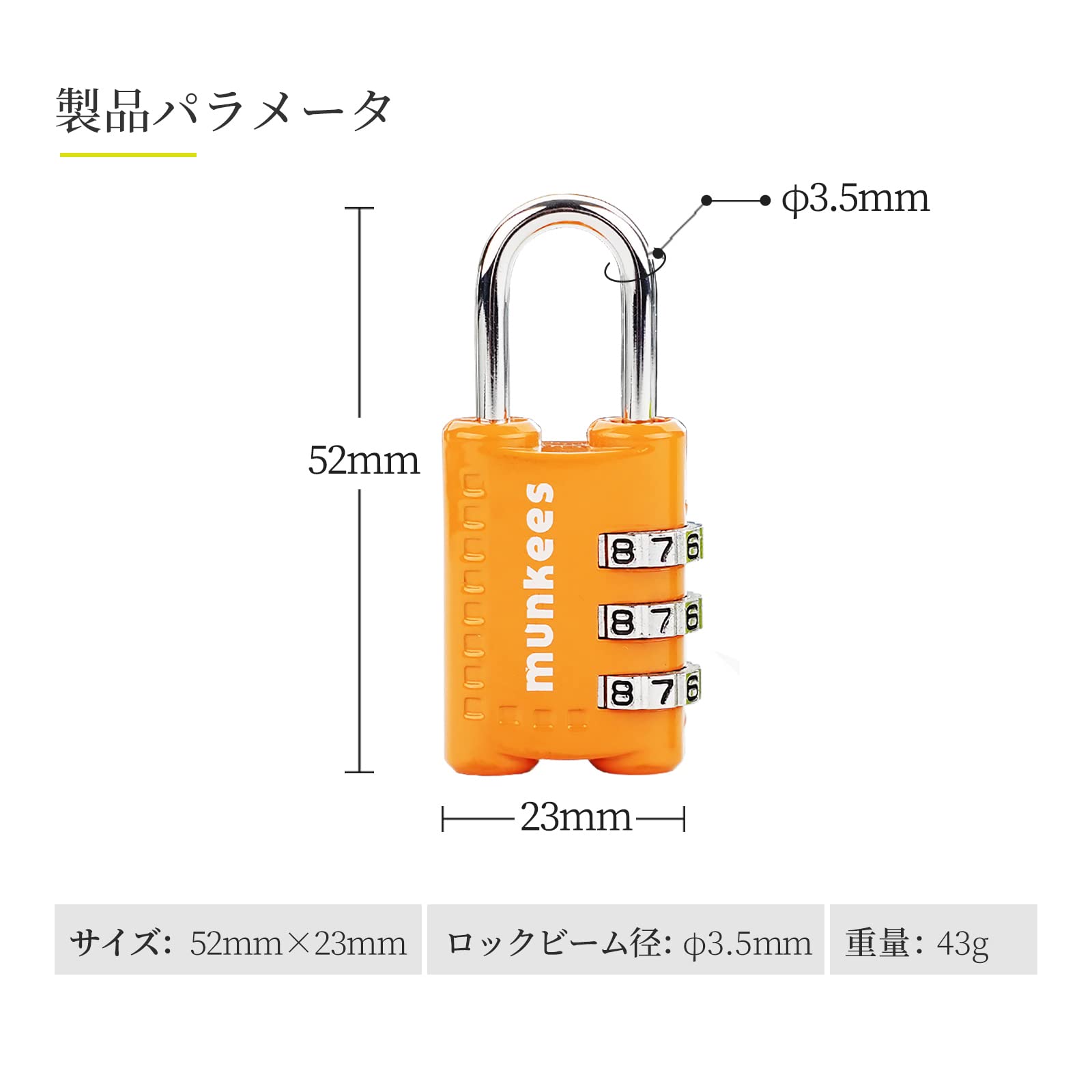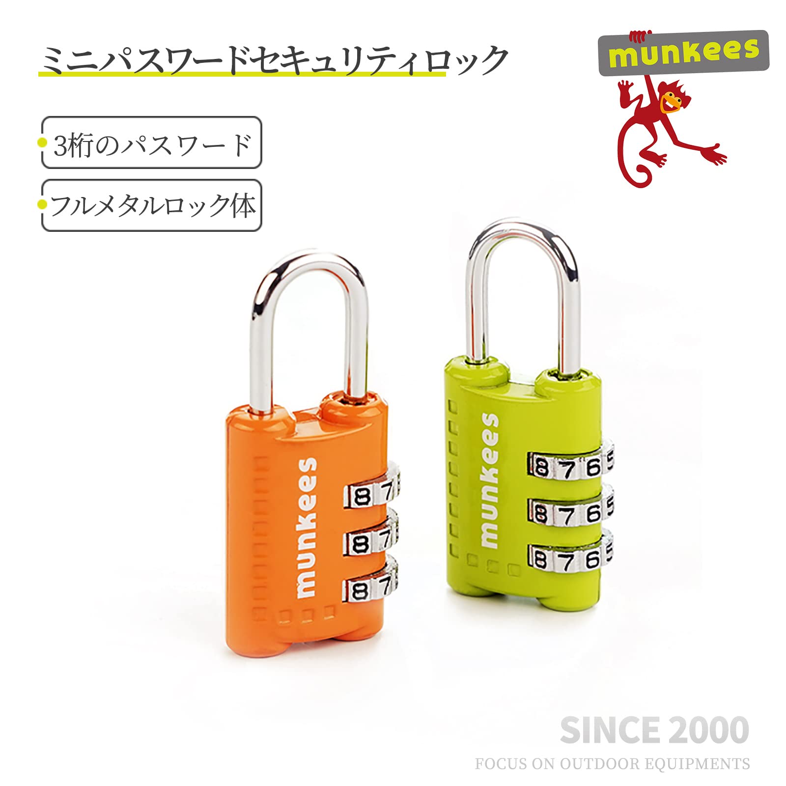 【在庫のみ】munkees ミニ パスワードロック 南京錠 旅行 ダイヤル式 ロック 暗証番号 荷物、スーツケース、バックパック用 (オレンジ)