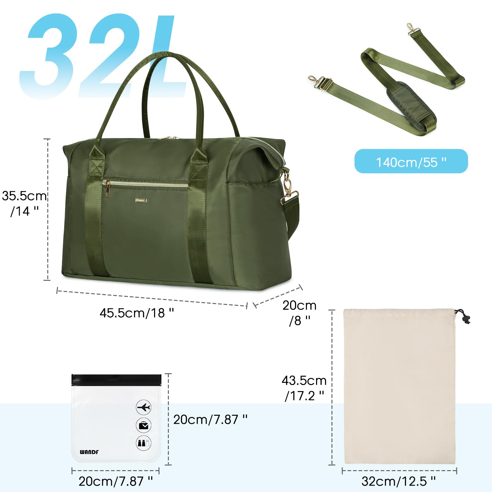【独立したTSAトイレタリーバッグ】WANDFトラベルバッグには、TSAの3-1-1液体規則に準拠した透明なトイレタリーバッグが付属しており、セキュリティスクリーニングをスムーズに進めるのに役立ちます。